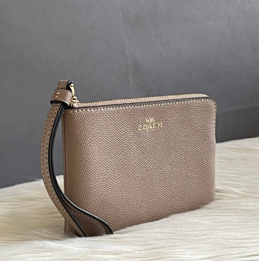 Coach Corner Zip Wristlet in Crossgrain Leather