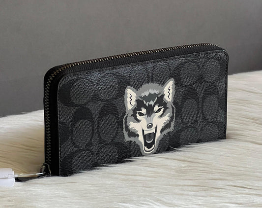 Coach Accordion Zip Wallet in Signature Canvas with Wolf Motif