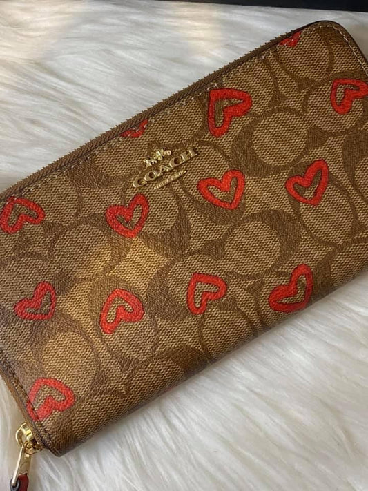 Coach Accordion Zip Wallet in Signature Canvas with Crayon Hearts Print