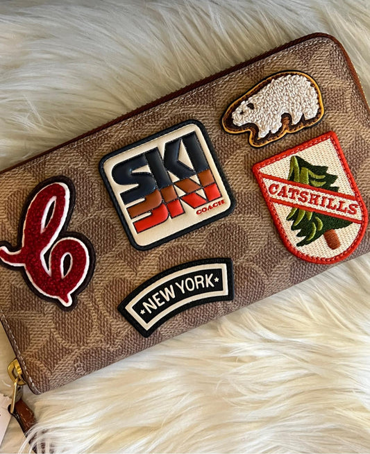 Coach Accordion Zip Wallet in Signature Canvas with Patches