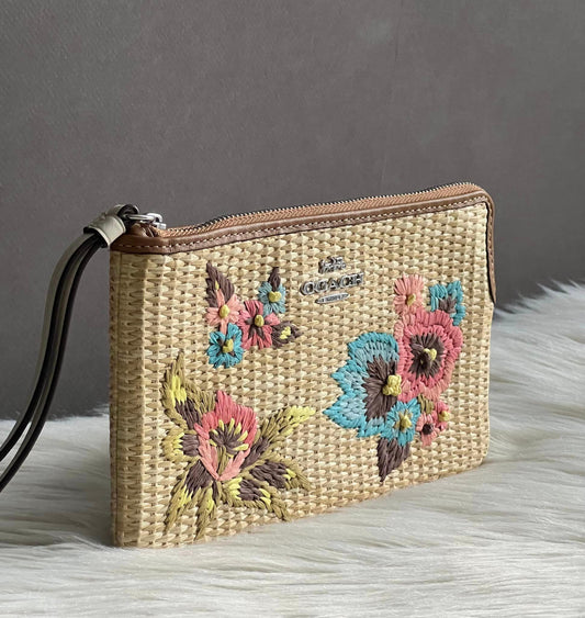 Coach Large Corner Zip Wristlet With Floral Embroidery
