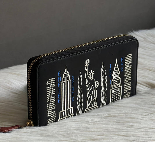 Coach Accordion Zip Wallet with Stardust City Skyline Embroidery