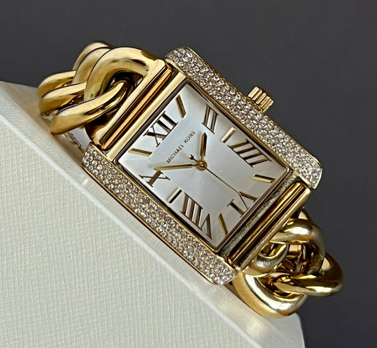 Michael Kors Women’s Oversized Emery Pavé Gold-Tone Curb Link Watch