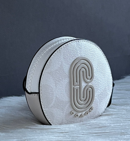 Coach Round Hybrid Pouch In Signature Canvas With Coach Patch