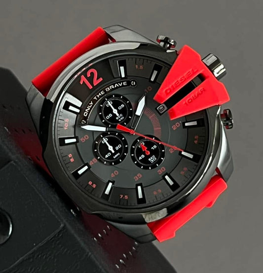 Diesel Men’s Mega Chief Chronograph Gunmetal Red Silicone Watch