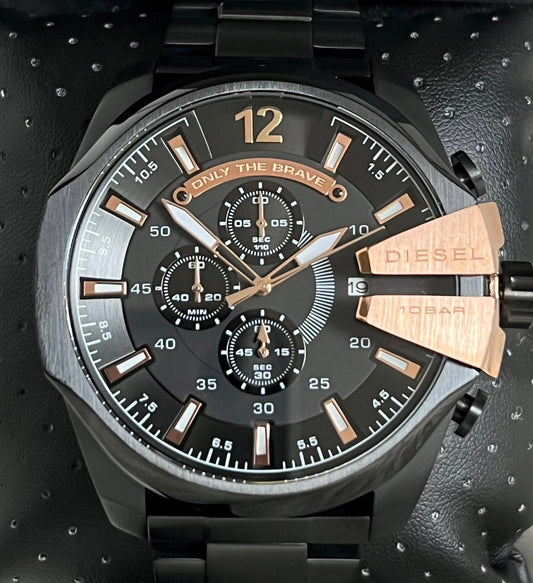 Diesel Men’s Mega Chief Black IP and Rose Gold Chronograph