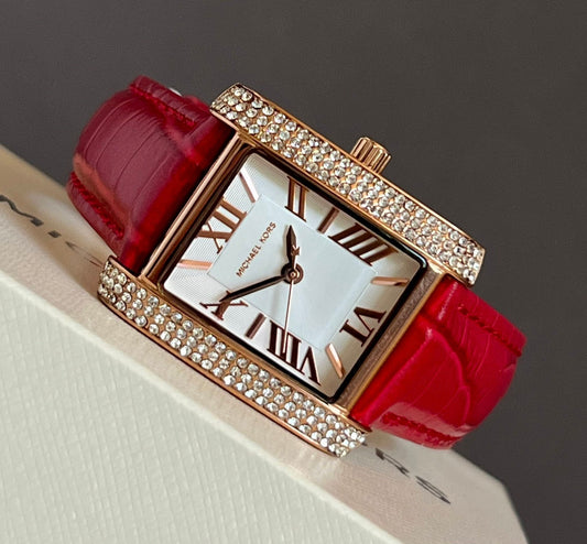 Michael Kors Women’s Mini Emery Pavé Rose Gold-Tone and Crocodile Embossed Leather Watch