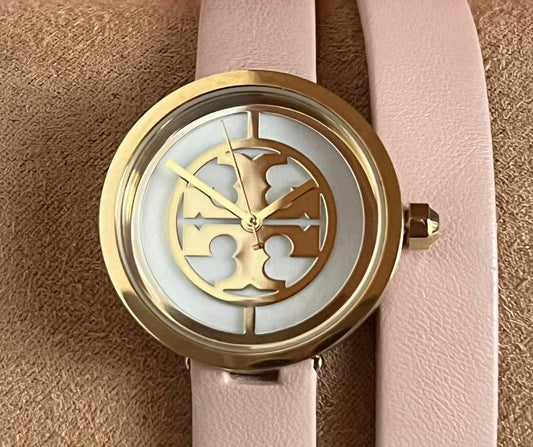 Tory Burch Reva Double-Wrap Watch in Nude Leather/Gold Tone