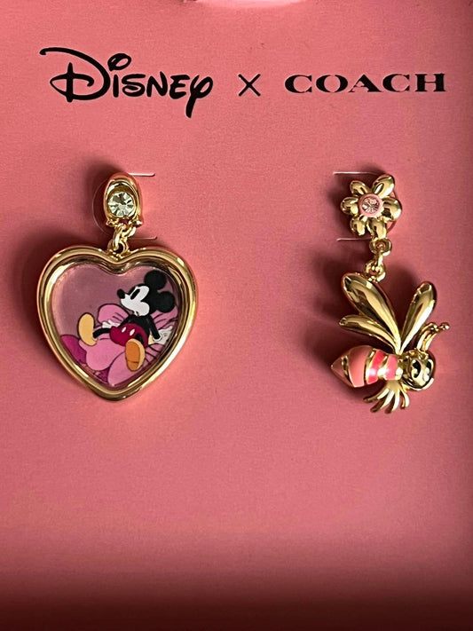 Disney X Coach Mickey Mouse and Flower Bee Mismatched Earrings