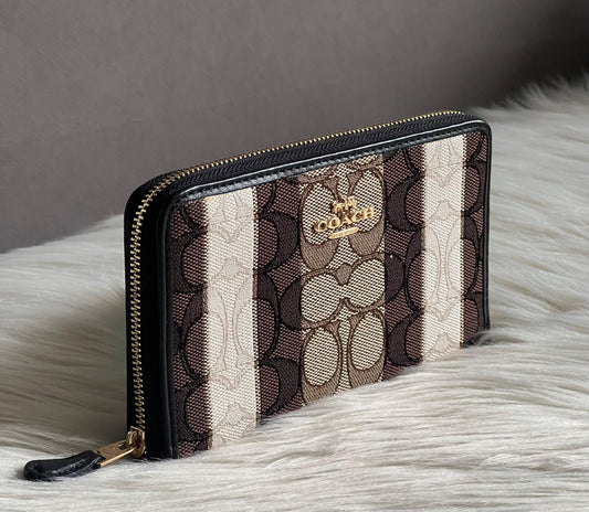 Coach Medium Id Zip Wallet In Signature Jacquard With Stripes
