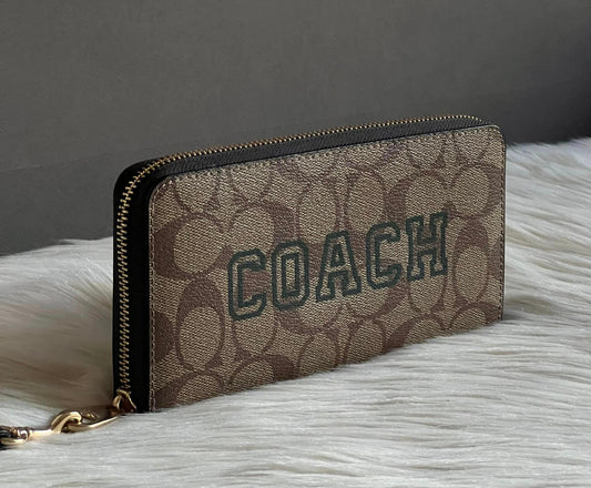 Coach Long Zip Around Wallet In Signature Canvas With Varsity Motif