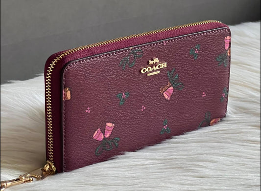 Coach Long Zip Around Wallet With Holiday Bells Print