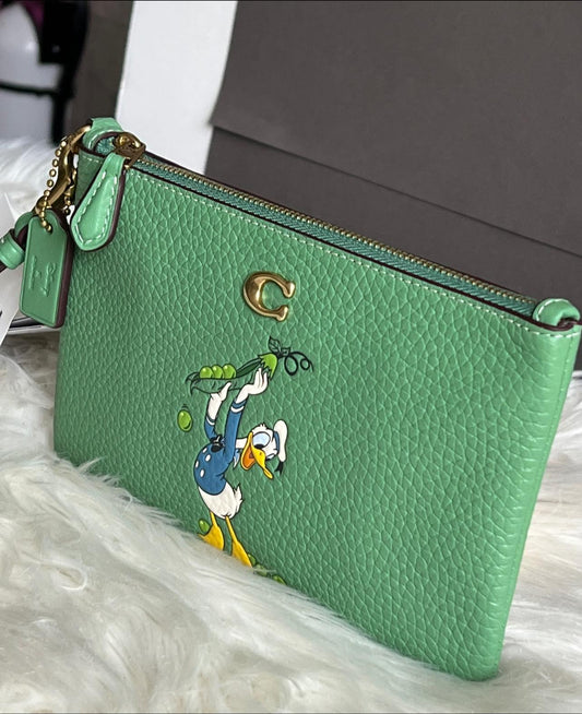 Disney X Coach Small Wristlet in Regenerative Leather with Donald Duck