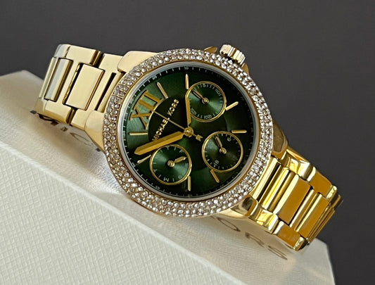 Michael Kors Women’s Camille Quartz Gold-Tone Green Dial Watch