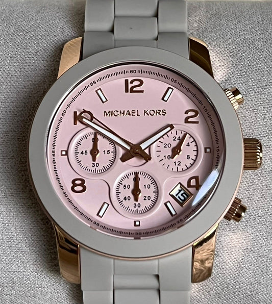 Michael Kors Women’s Runway Chronograph Rose Gold-Tone Stainless Steel and Wheat Silicone Watch