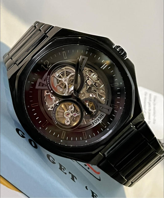 Fossil Men’s Evanston Automatic Black Stainless Steel Watch