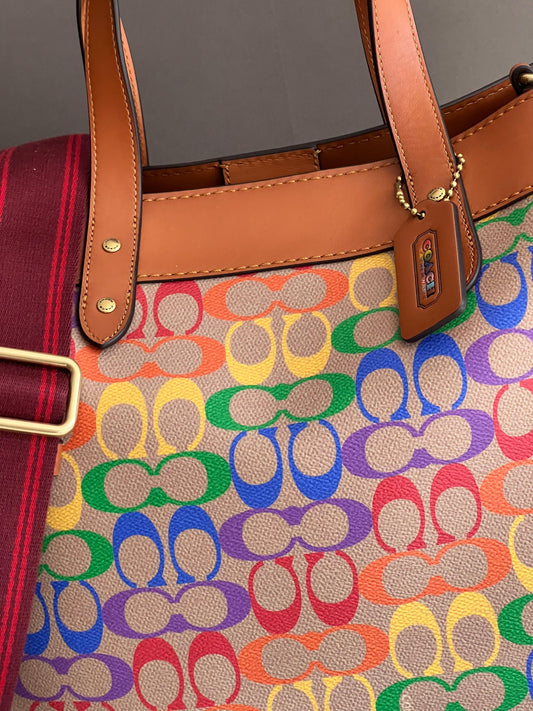 Coach Field Tote 40 in Rainbow Signature Canvas