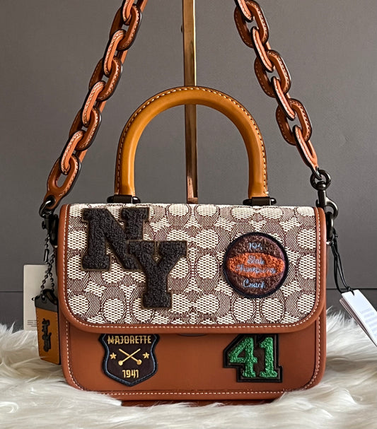 Coach Rogue Top Handle in Signature Textile Jacquard with Varsity Patches