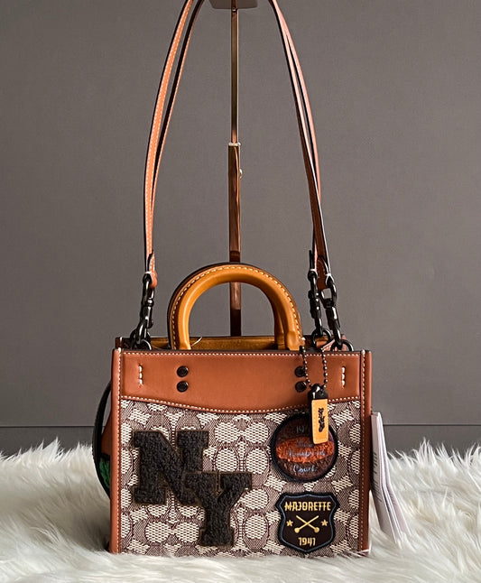 Coach Rogue 20 In Signature Textile Jacquard with Varsity Patches