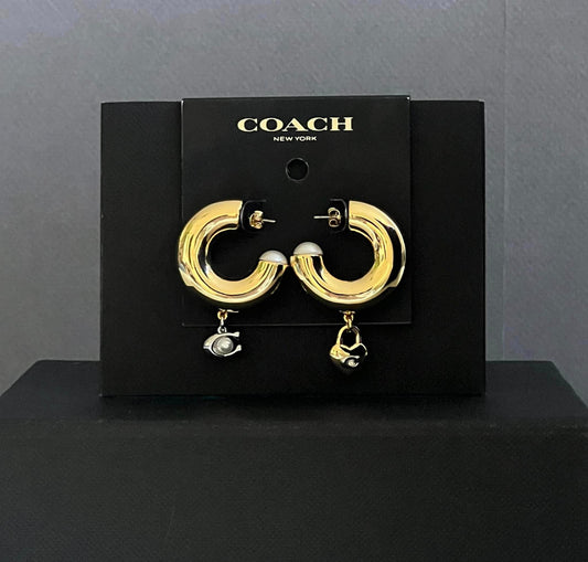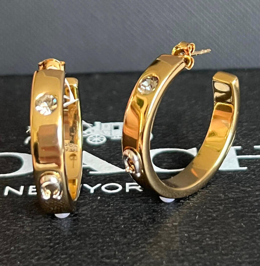 Coach Pegged Signature And Stone Small Hoop Earrings