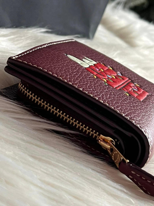 Coach X Peanuts Small Zip Around Wallet with Snoopy Walk Motif