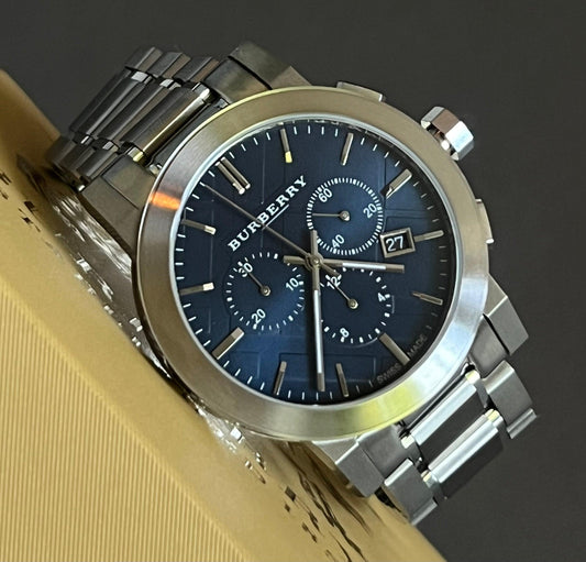 Burberry Men’s Large Check Blue Dial Stainless Steel Watch