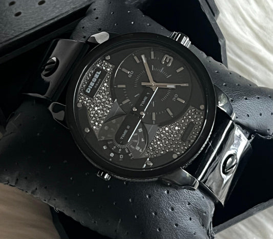 Diesel Unisex Mini Daddy Three-Hand Gunmetal Leather Watch
