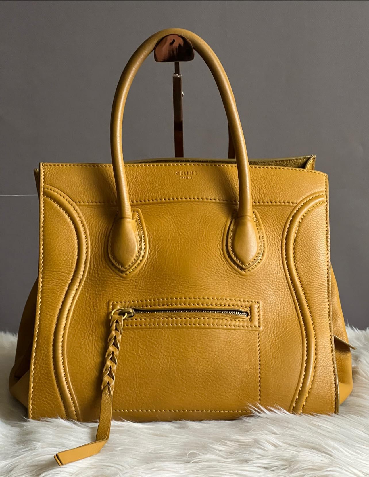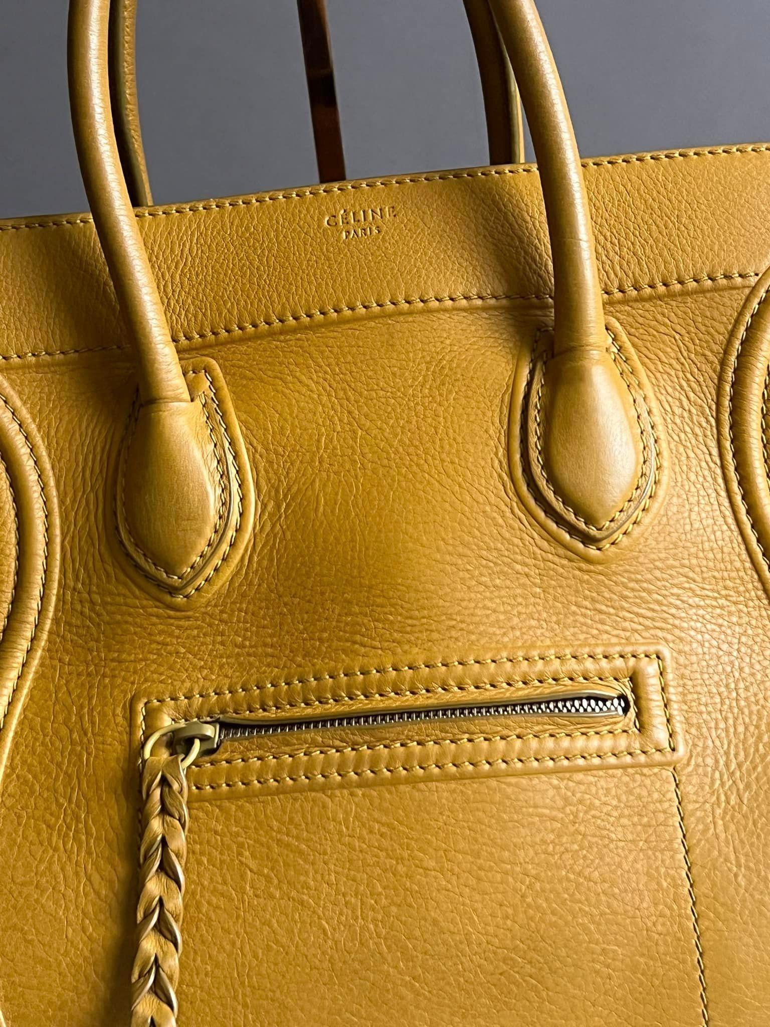Introducing the Celine Phantom Luggage Tote. This iconic tote features a spacious interior, making it perfect for everyday use. Crafted with luxurious leather, it exudes elegance and style. With its timeless design, it will elevate any outfit. Invest in this must-have bag for a lasting and versatile addition to your collection.
