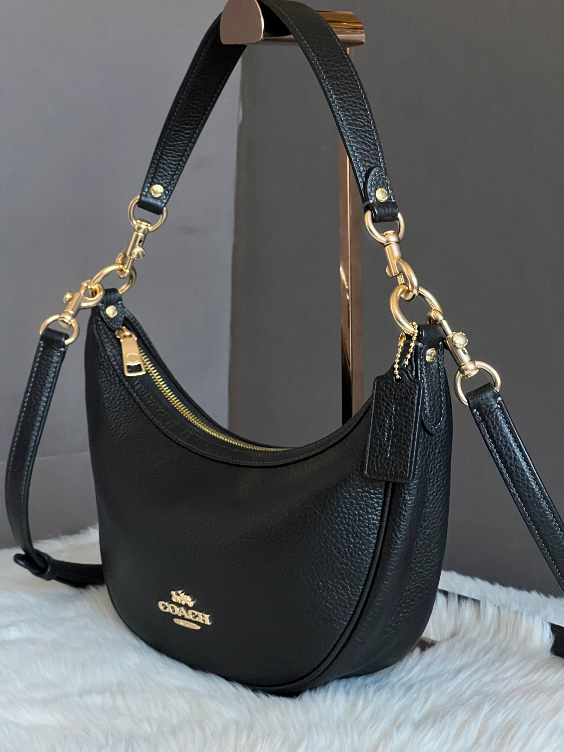 The Coach Aria Shoulder Bag is a must-have accessory for the fashionable woman. With its sleek design and spacious interior, this bag is perfect for both everyday use and special occasions. Made with high-quality materials and expert craftsmanship, it will be a timeless addition to any wardrobe.