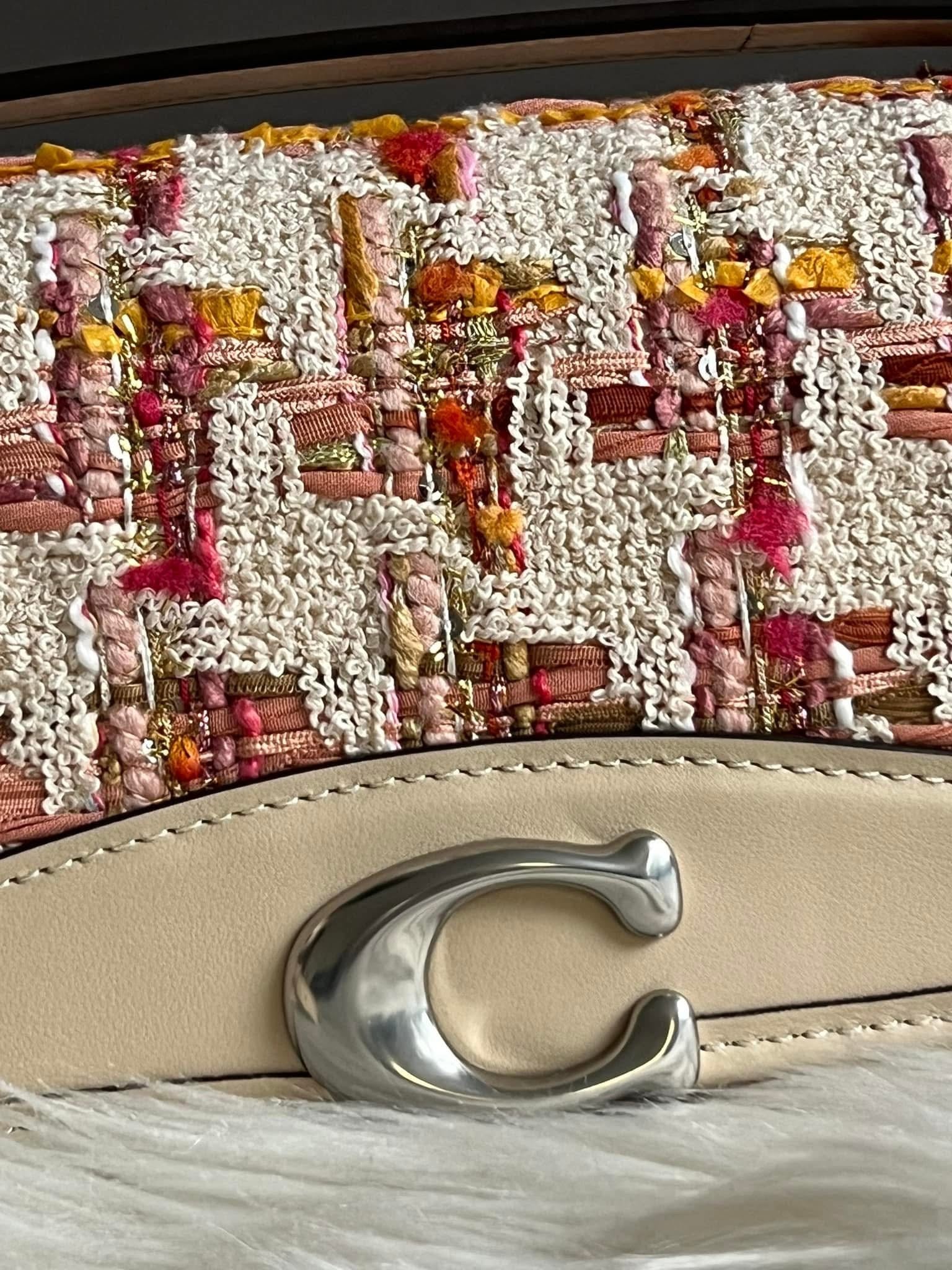 Discover the perfect accessory to elevate any outfit. The Coach Bandit Crossbody Bag in Tweed offers a trendy and sophisticated touch, with its unique design and high-quality construction. With this bag, you can easily carry all your essentials while looking stylish and put-together.