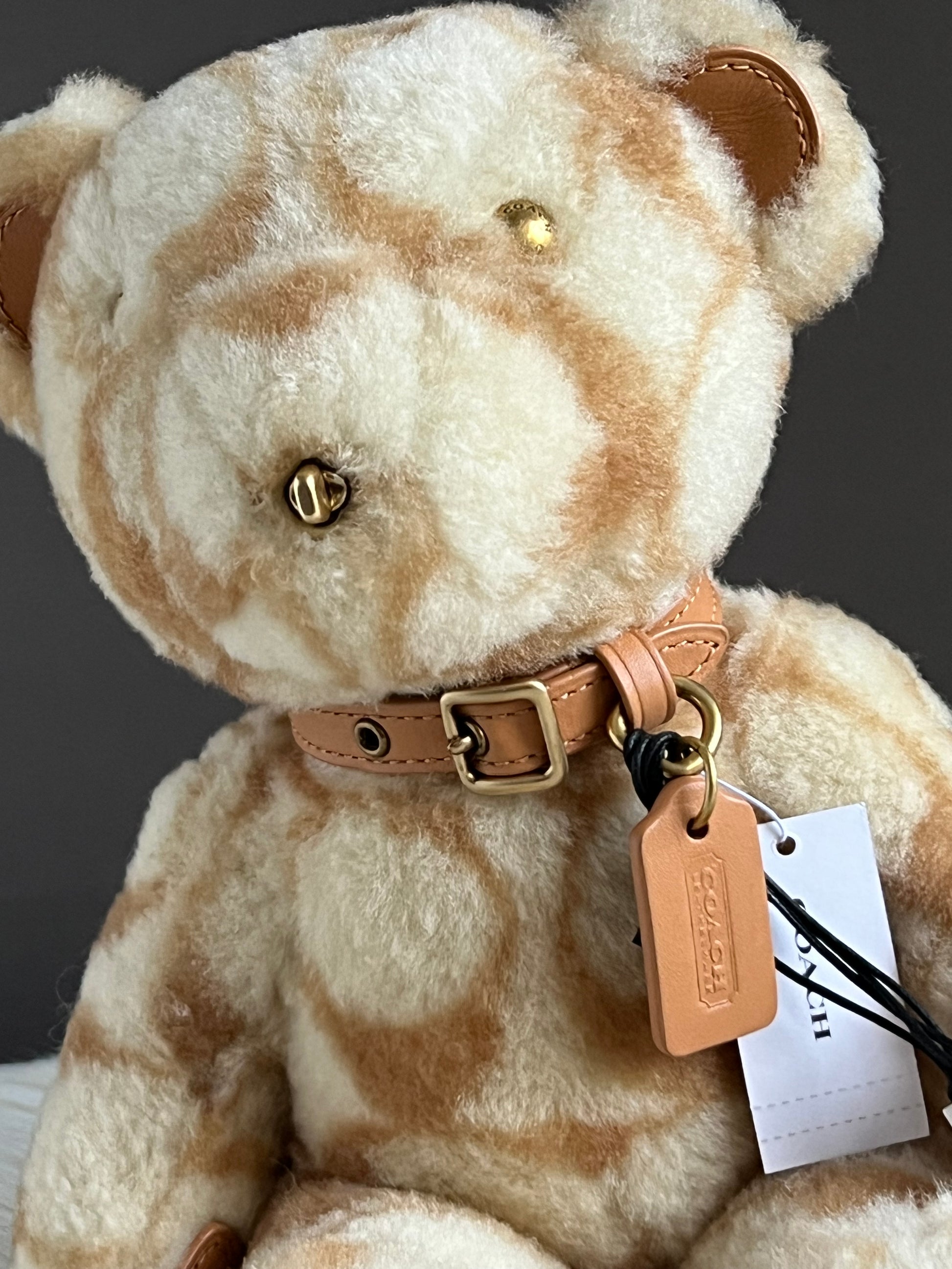 Introducing the Coach Bear Collectible, made from luxurious Signature Shearling. This high-quality collectible showcases intricate detailing and craftsmanship, perfect for any collector or fan of the brand. With its soft and durable materials, this bear is sure to become a cherished addition to your collection.