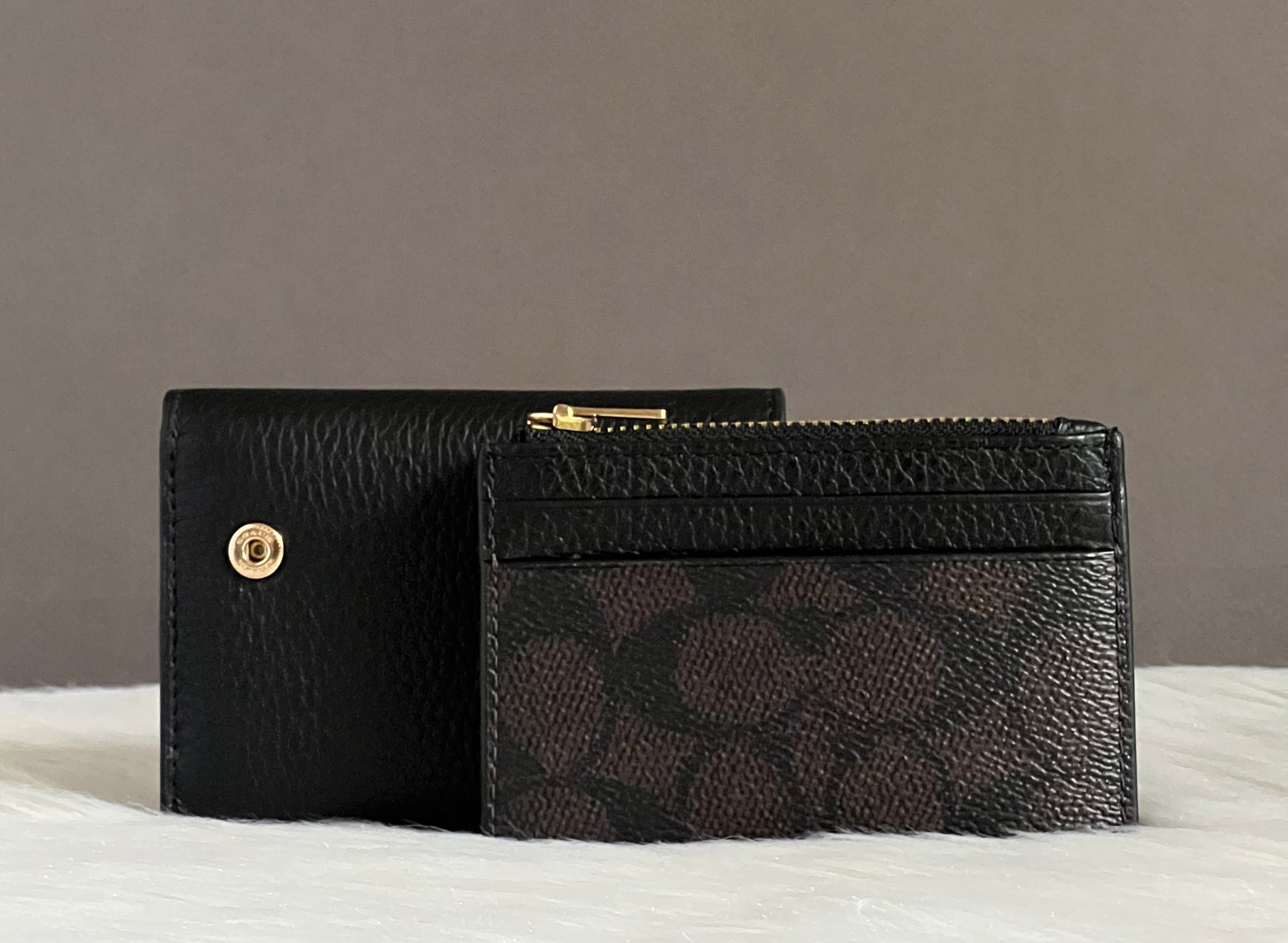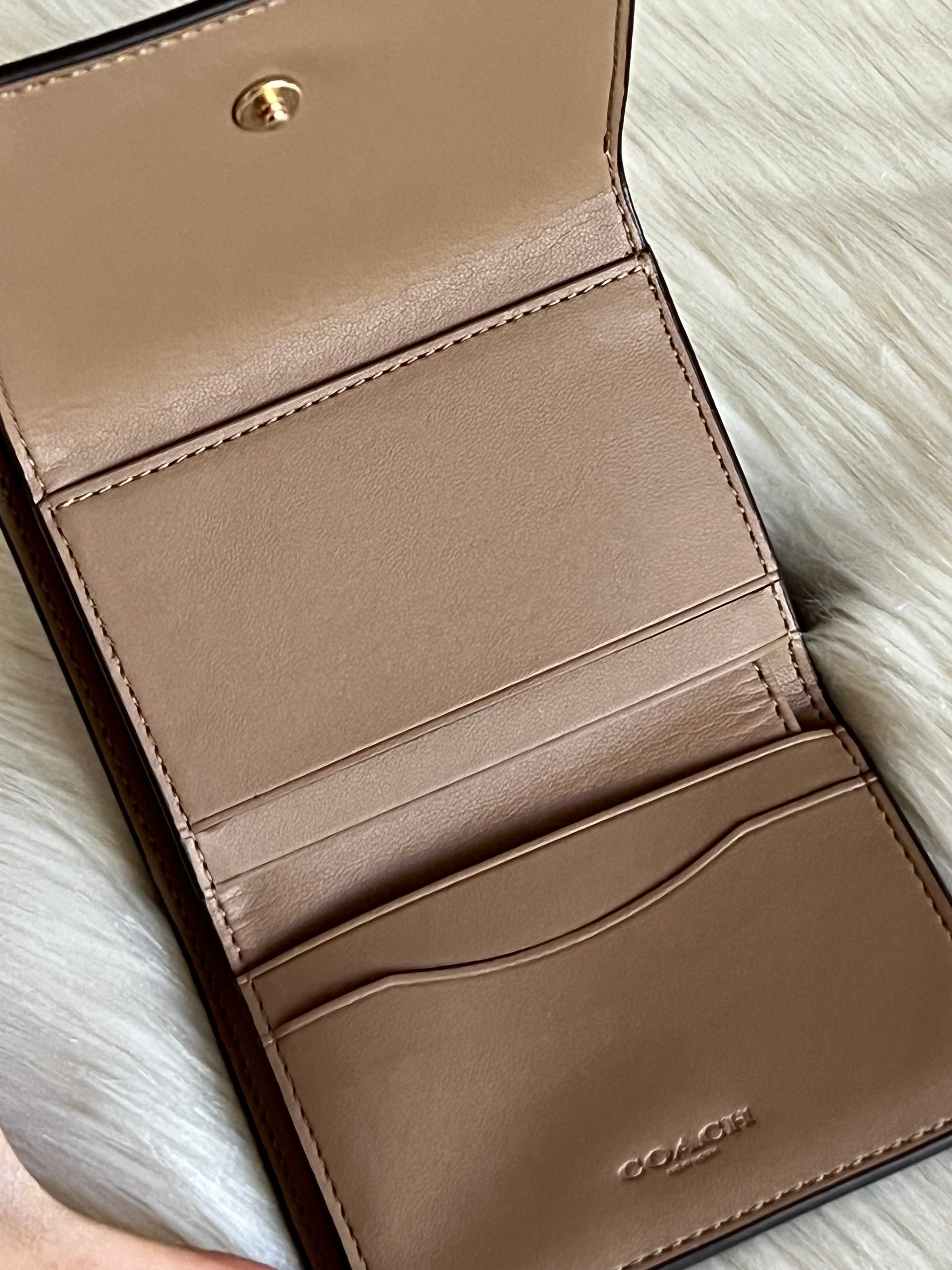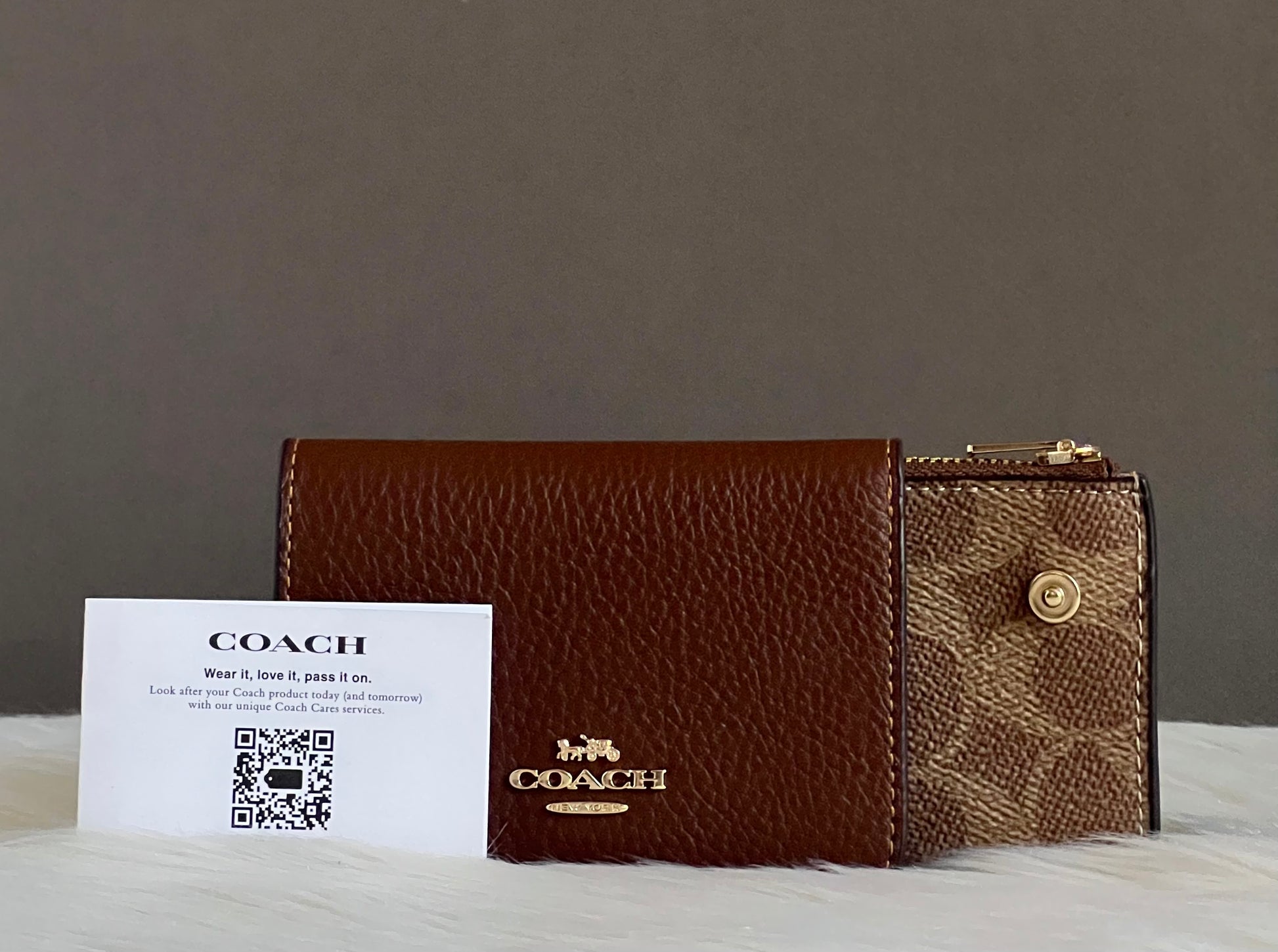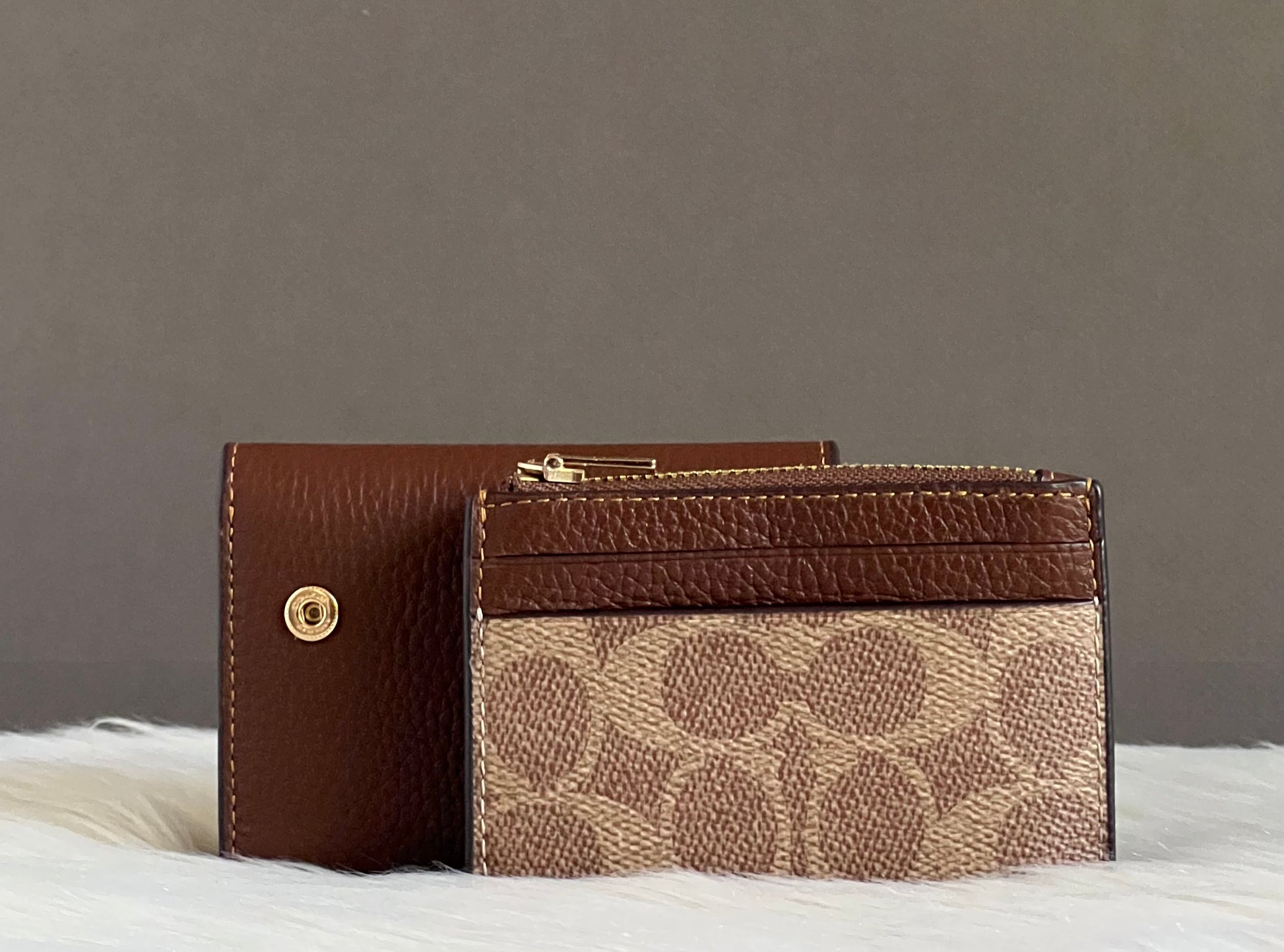 This Coach Card Holder Wallet is crafted from durable Signature Canvas and is a sleek and stylish way to organize and carry your essentials. With multiple card slots and a compact design, it offers convenience and functionality while adding a touch of luxury to your everyday life. Perfect for the fashion-forward and practical individual.
