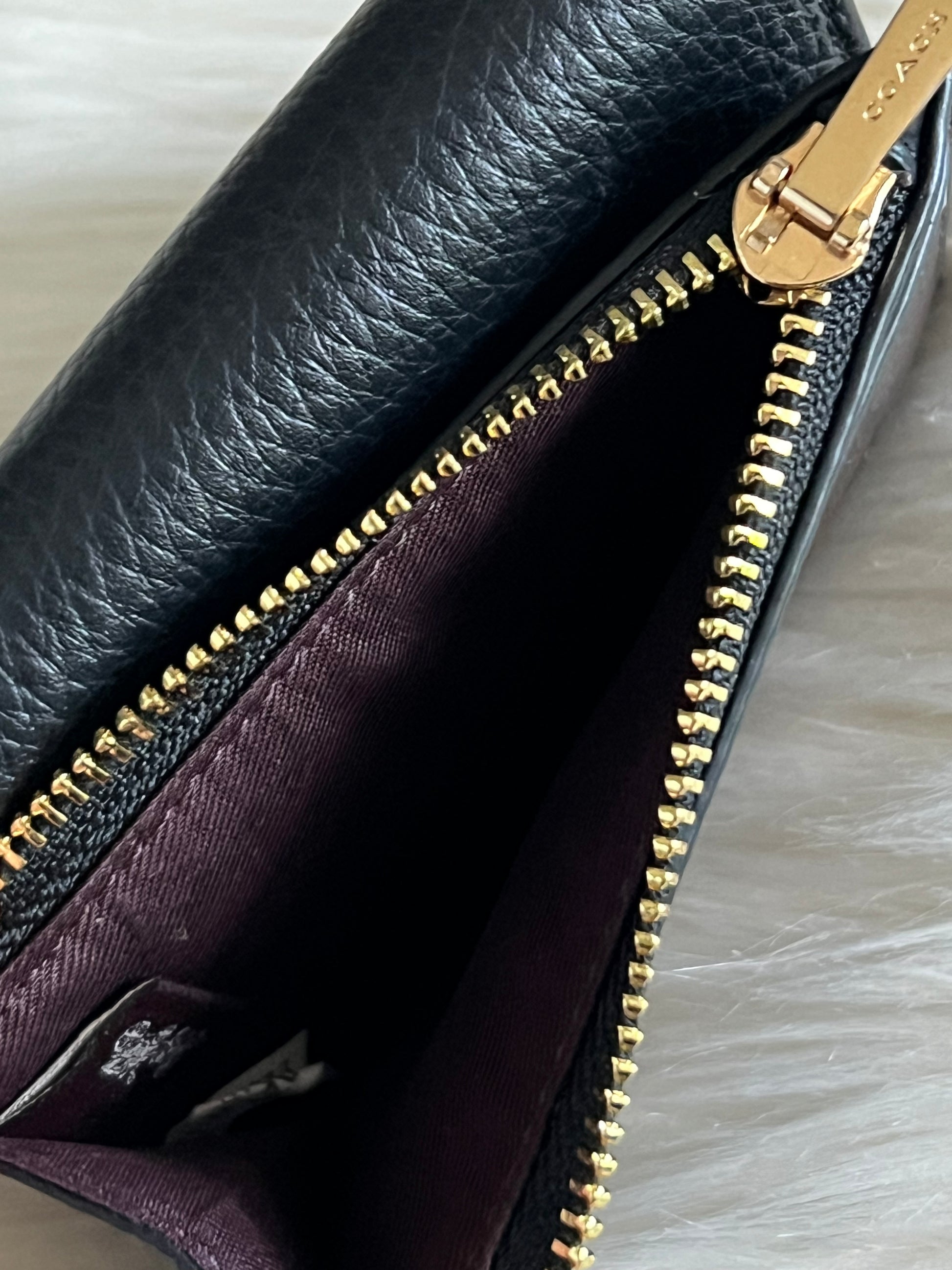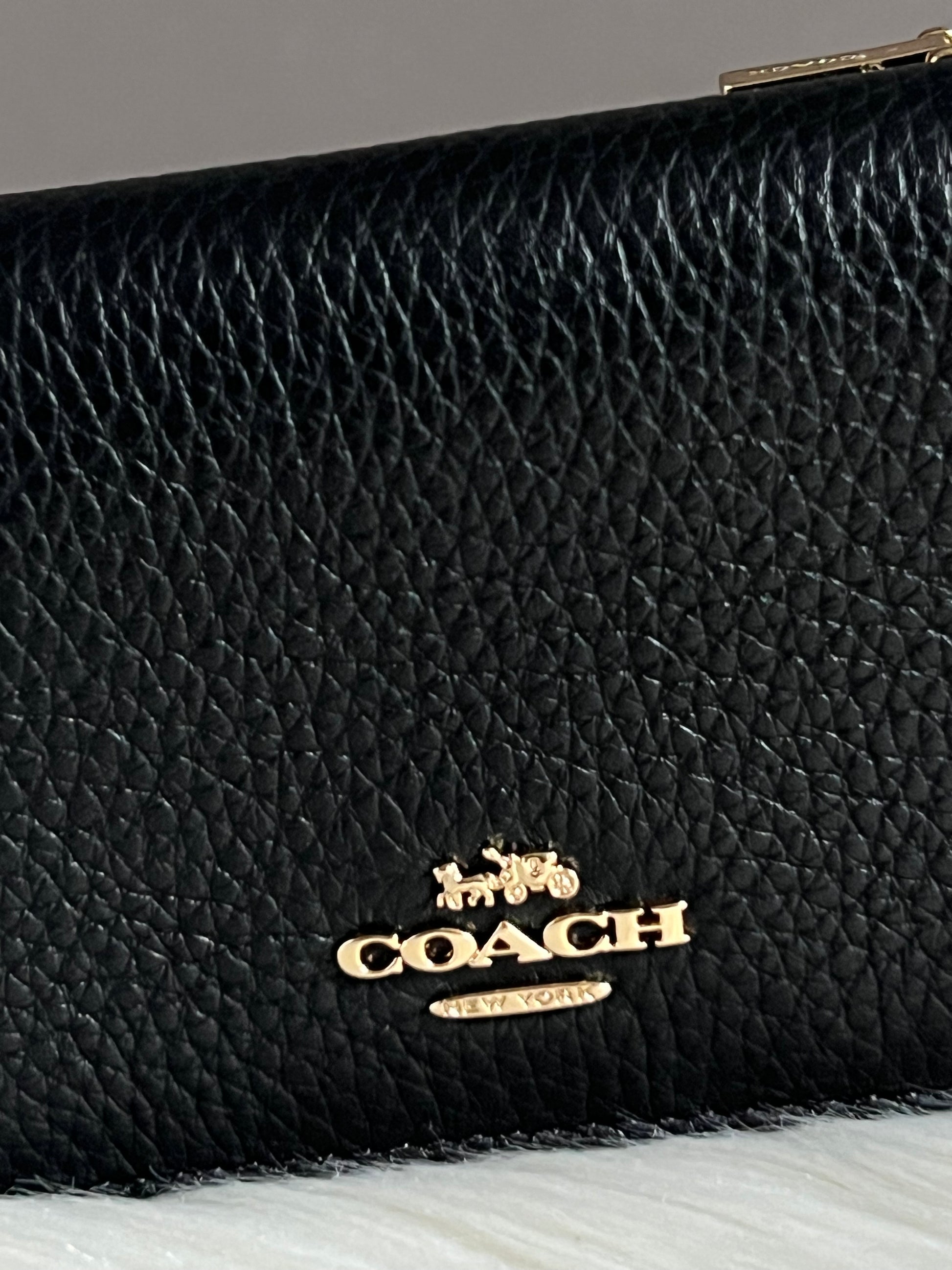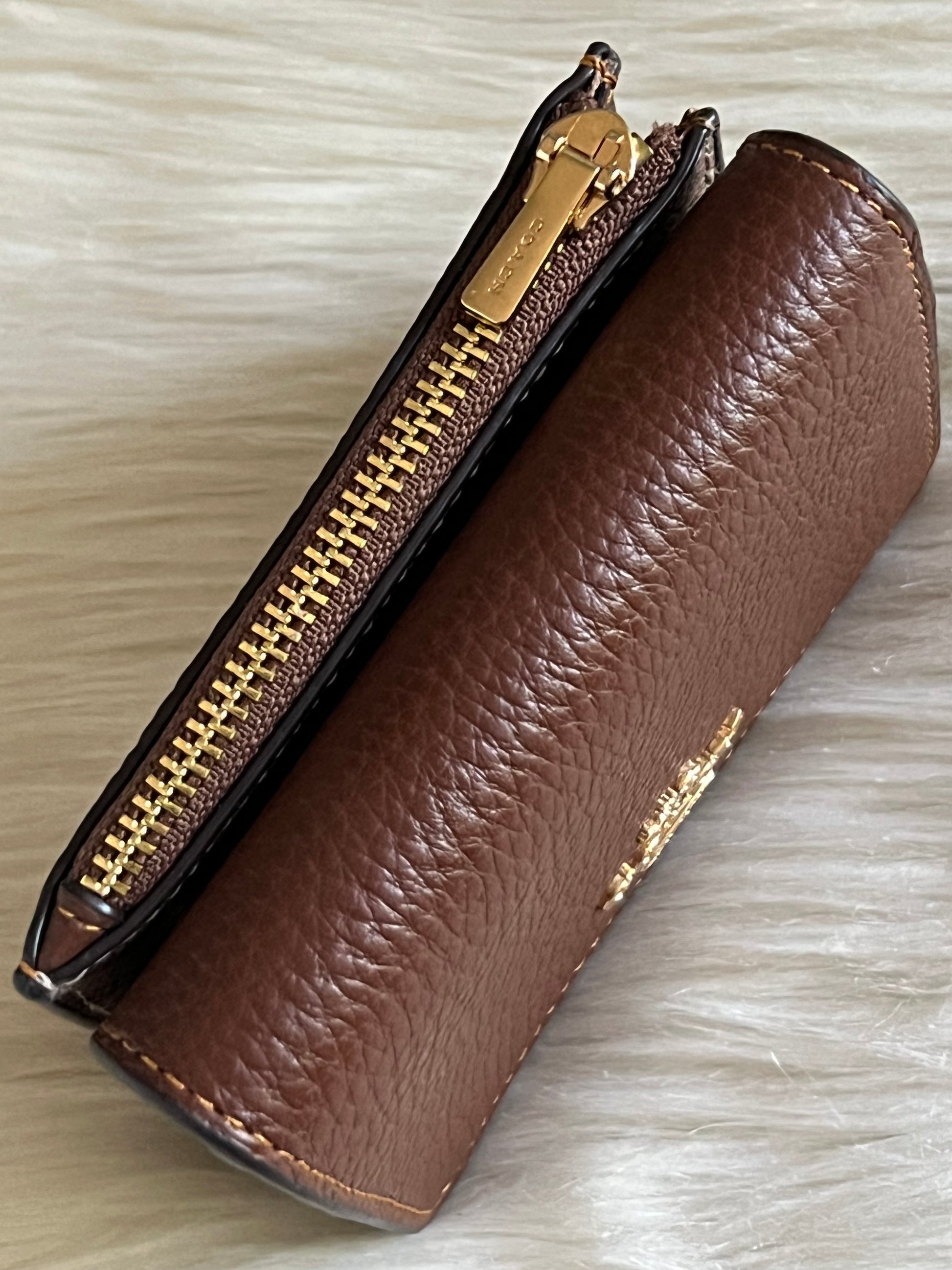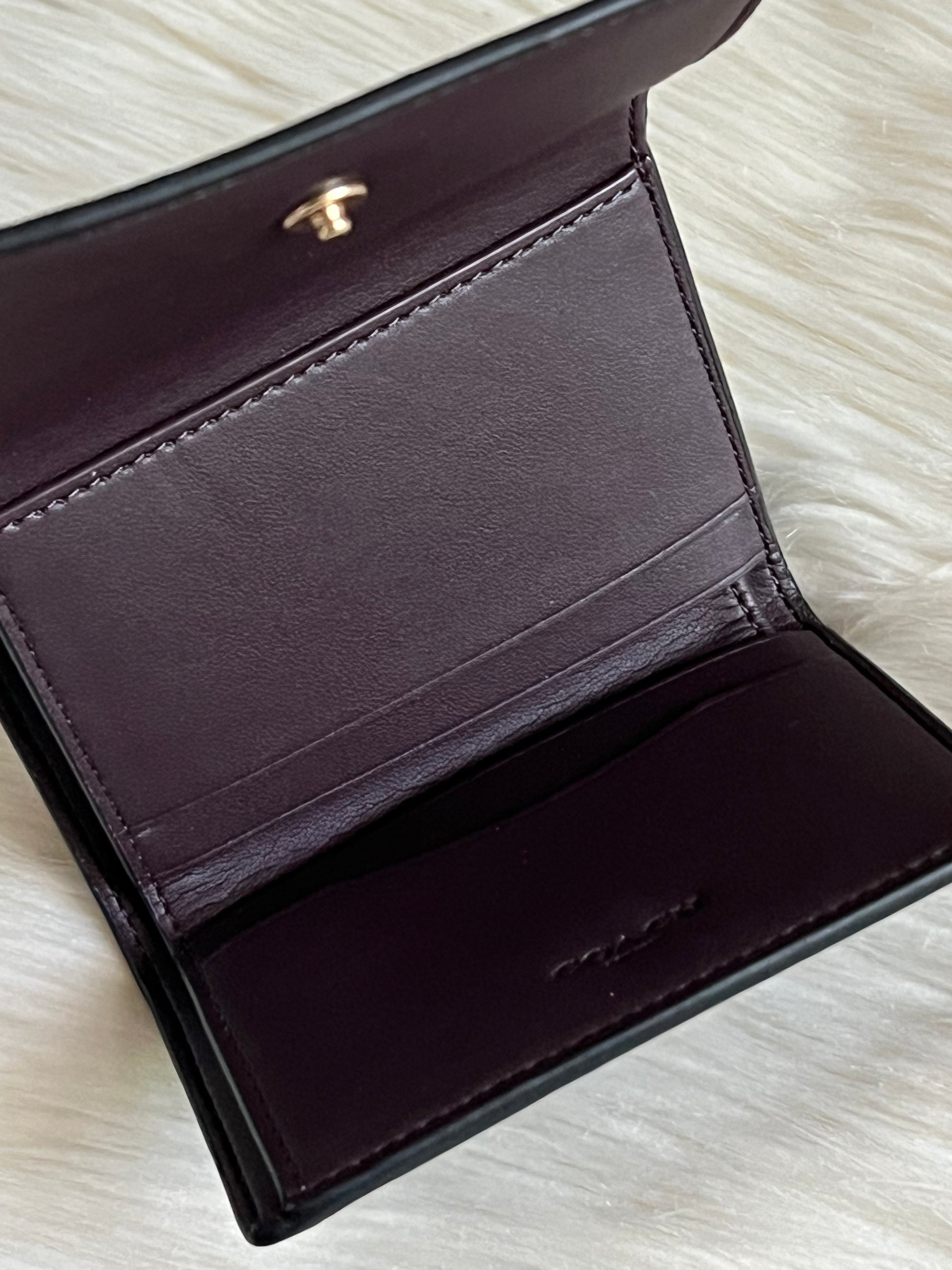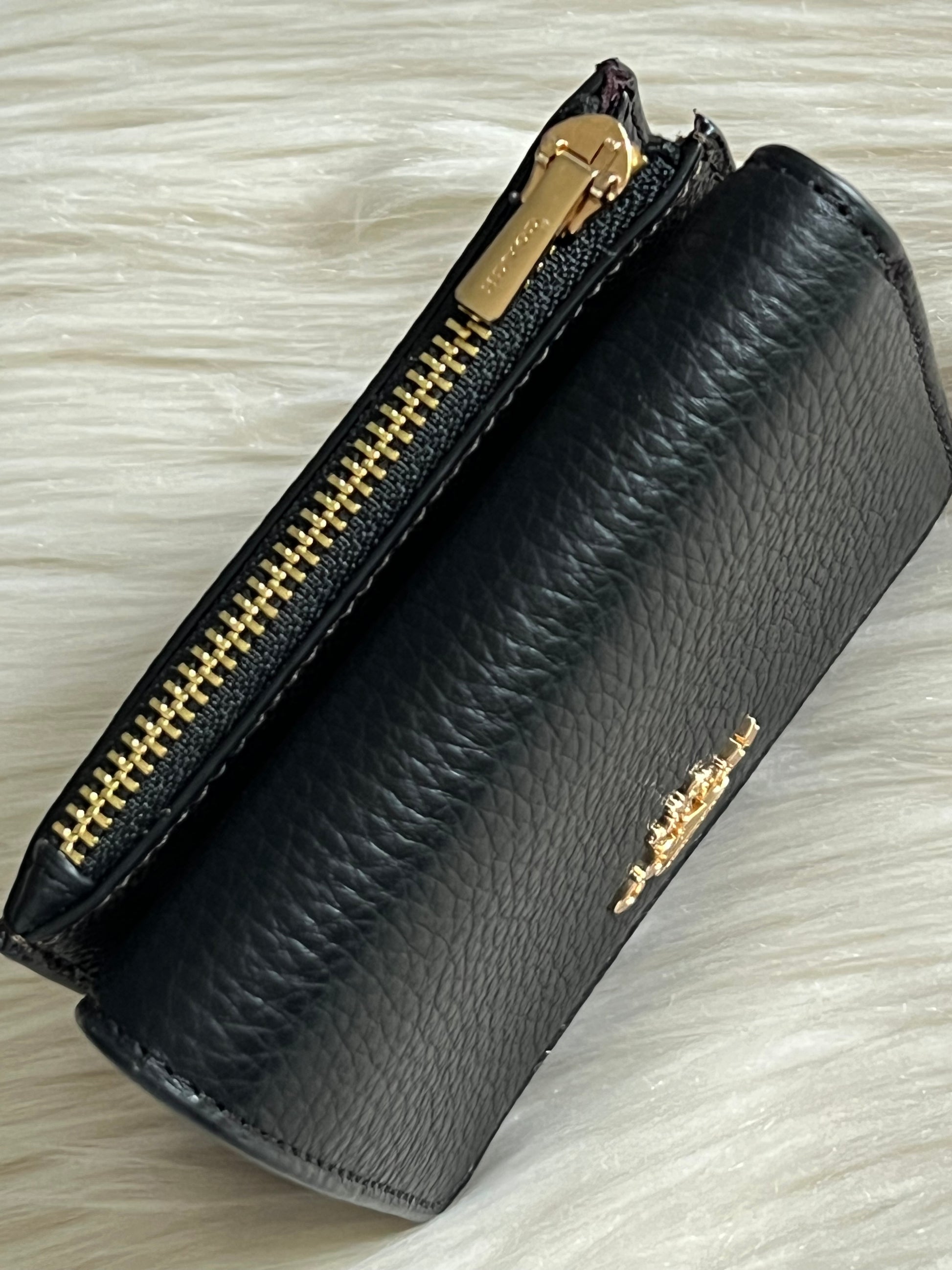 This Coach Card Holder Wallet is crafted from durable Signature Canvas and is a sleek and stylish way to organize and carry your essentials. With multiple card slots and a compact design, it offers convenience and functionality while adding a touch of luxury to your everyday life. Perfect for the fashion-forward and practical individual.