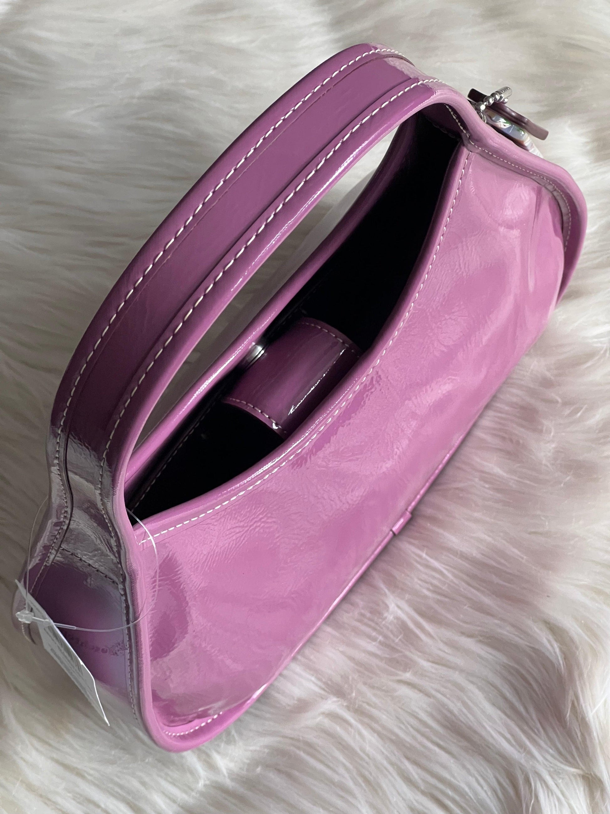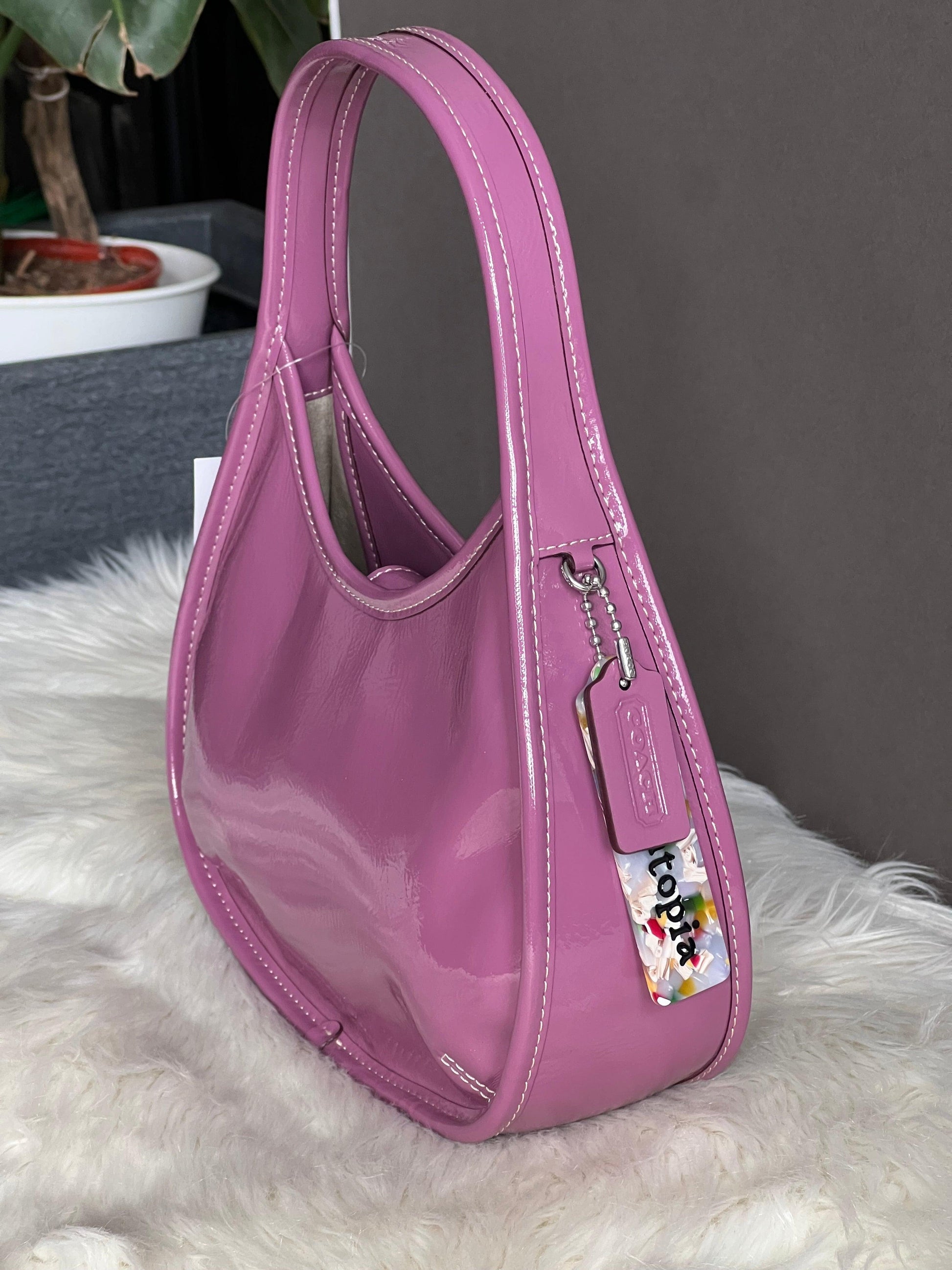 Expertly crafted with crinkle patent Coachtopia leather, the Coach Ergo Bag is the ultimate accessory for any fashion-forward individual. Designed with both style and function in mind, this bag combines luxurious materials with spacious compartments and a comfortable, ergonomic shape. Perfect for everyday use or special occasions.