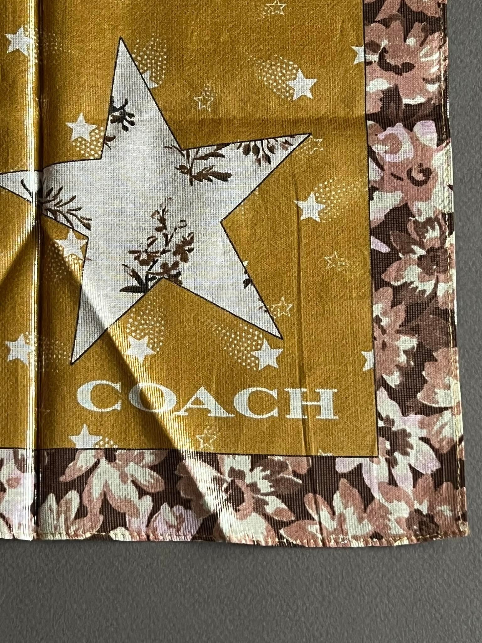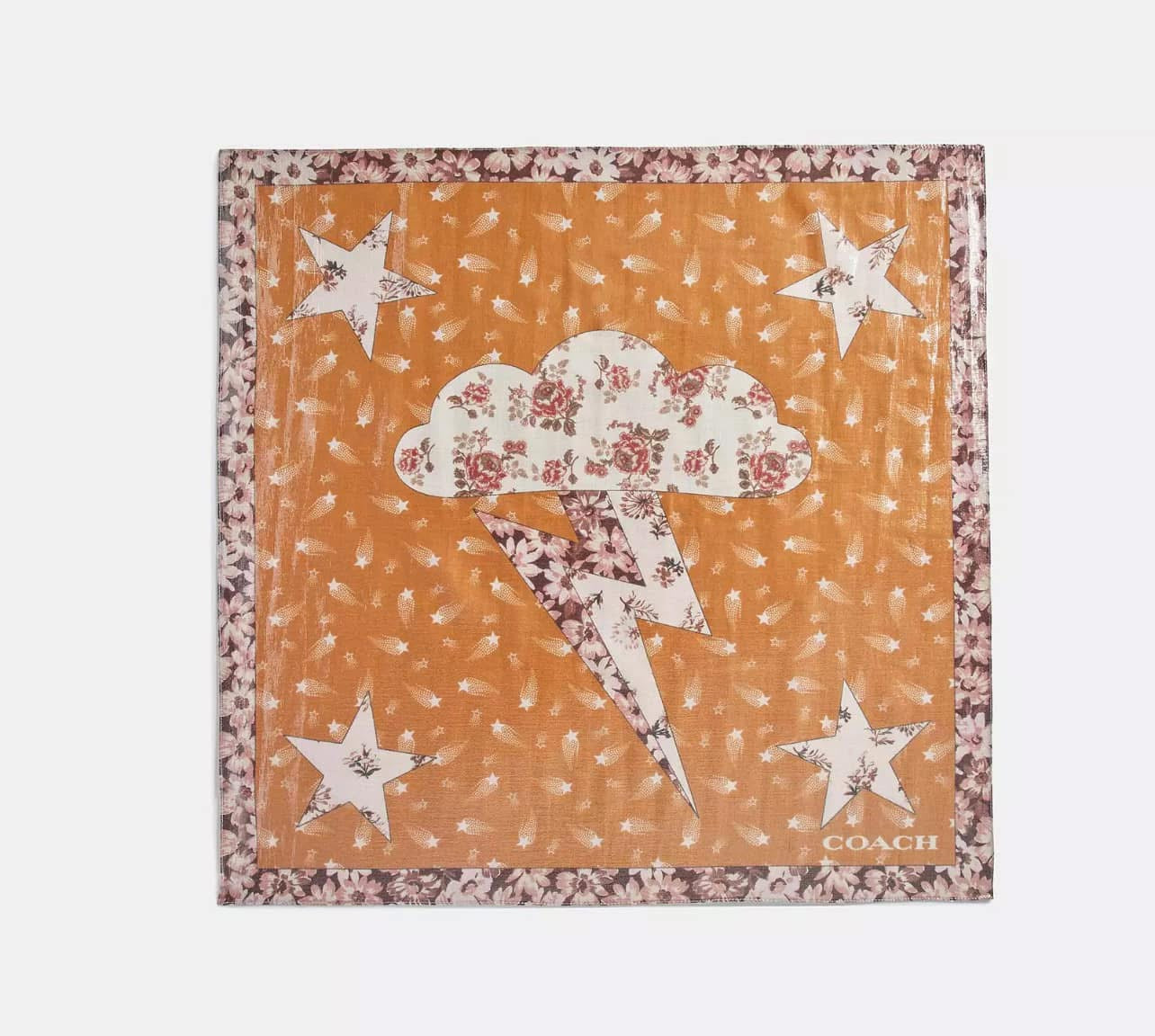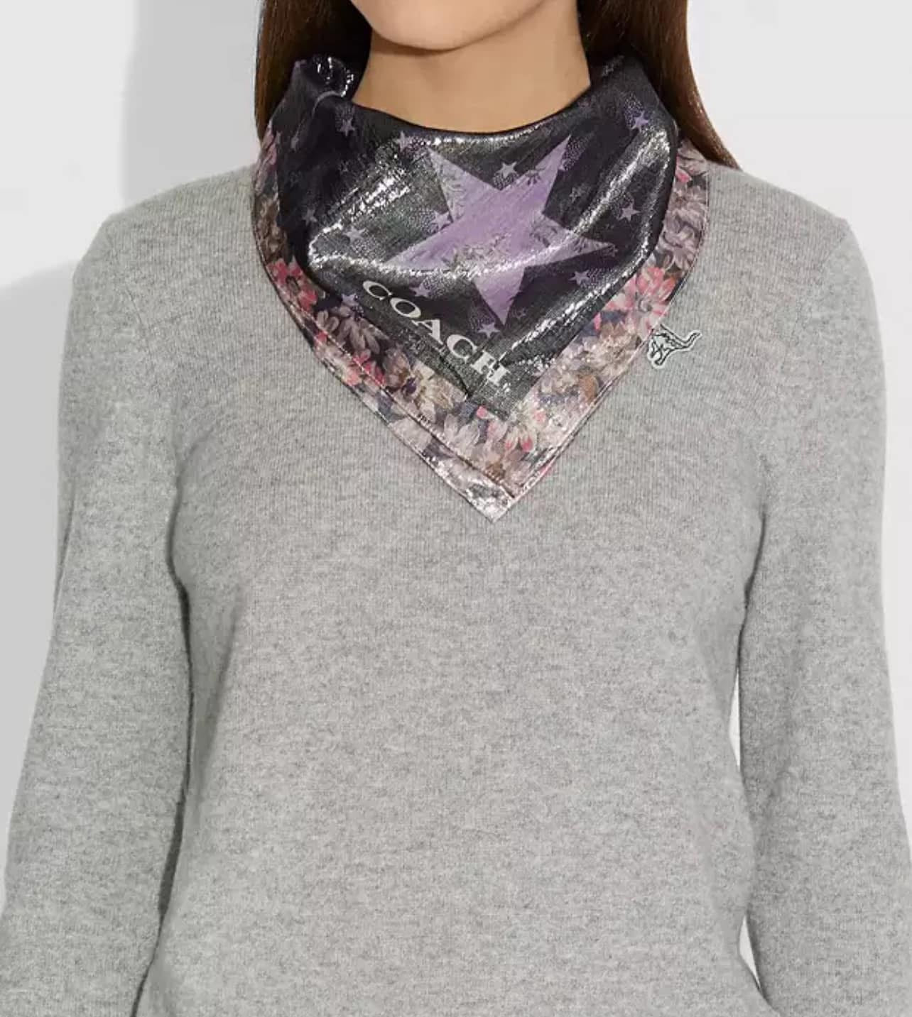 Elevate your fashion game with the Coach Glam Rock Lame Bandana. Made from high-quality material, this bandana exudes luxury and sophistication. Perfect for adding a touch of edginess to any outfit, this accessory features a stunning glam rock pattern. Step out in style and make a statement with this must-have accessory.