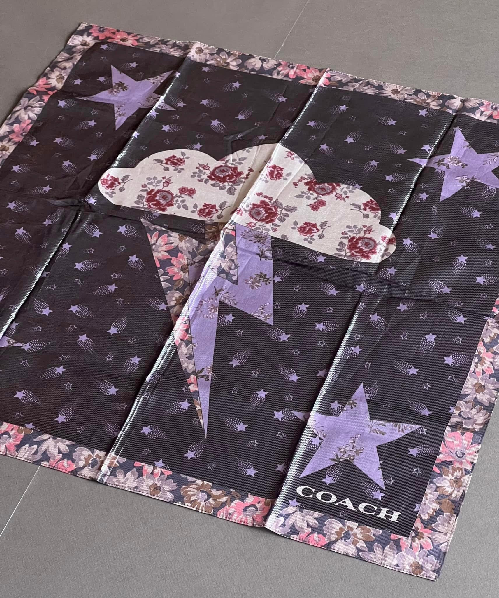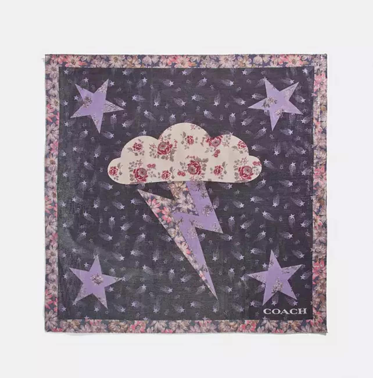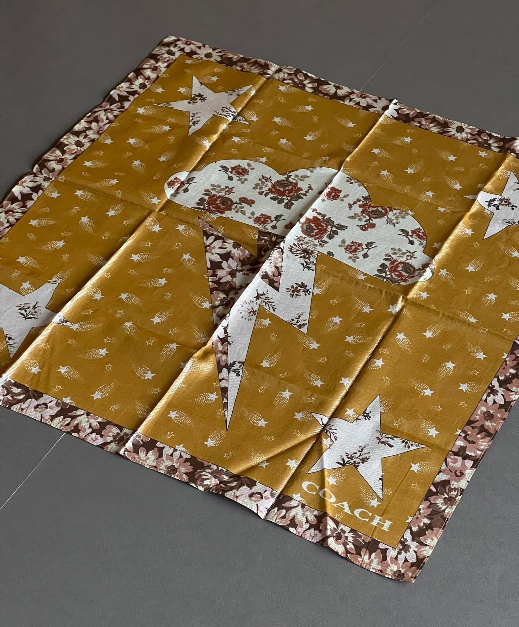 Elevate your fashion game with the Coach Glam Rock Lame Bandana. Made from high-quality material, this bandana exudes luxury and sophistication. Perfect for adding a touch of edginess to any outfit, this accessory features a stunning glam rock pattern. Step out in style and make a statement with this must-have accessory.