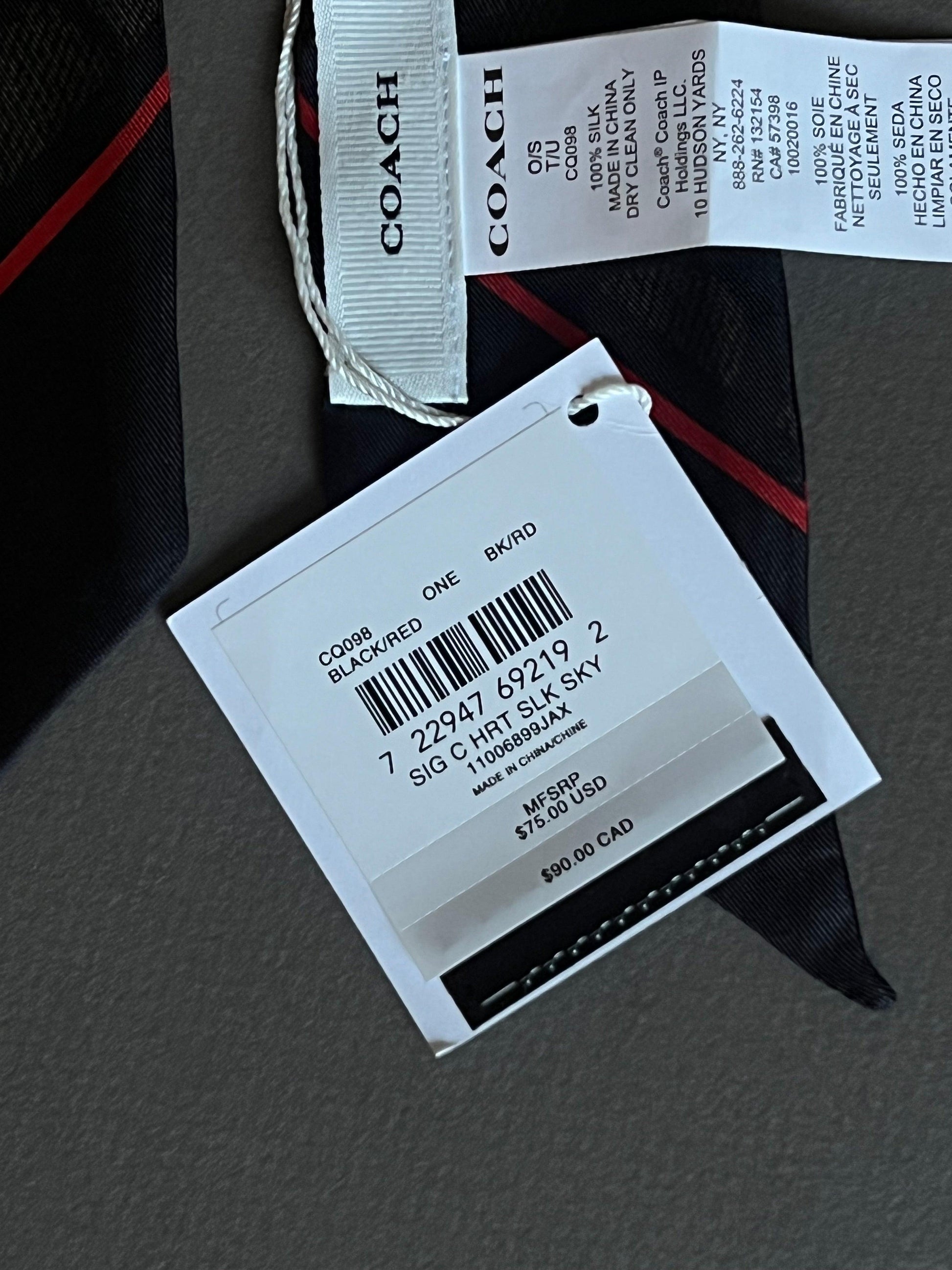 Indulge in luxury with our Coach Hearts Print Silk Skinny Scarf. Made from premium silk, this elegant accessory features a chic hearts print that adds a touch of glamour to any outfit. Elevate your style and make a statement today.