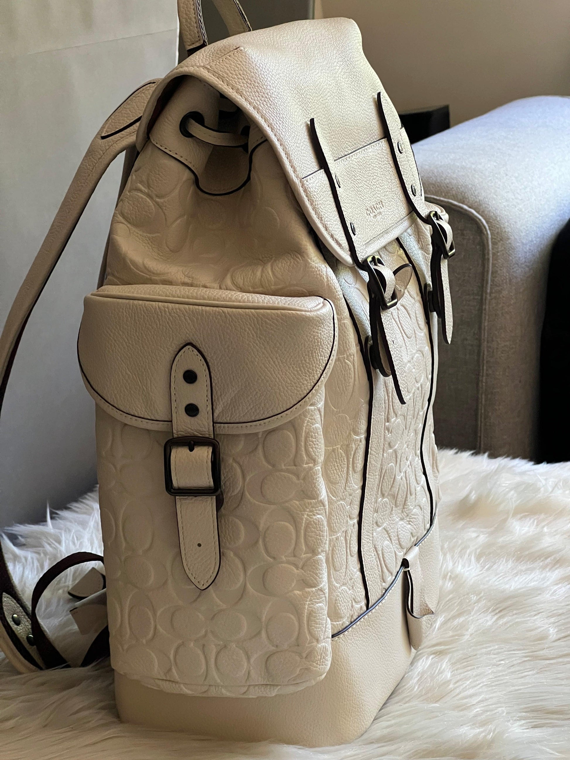 Upgrade your everyday style with the Coach Hitch Backpack in Signature Leather. Featuring a spacious interior and durable leather construction, this backpack provides both functionality and fashion. Stay organized with multiple pockets and carry with ease using the adjustable shoulder straps. Elevate your look with this sleek and sophisticated accessory.