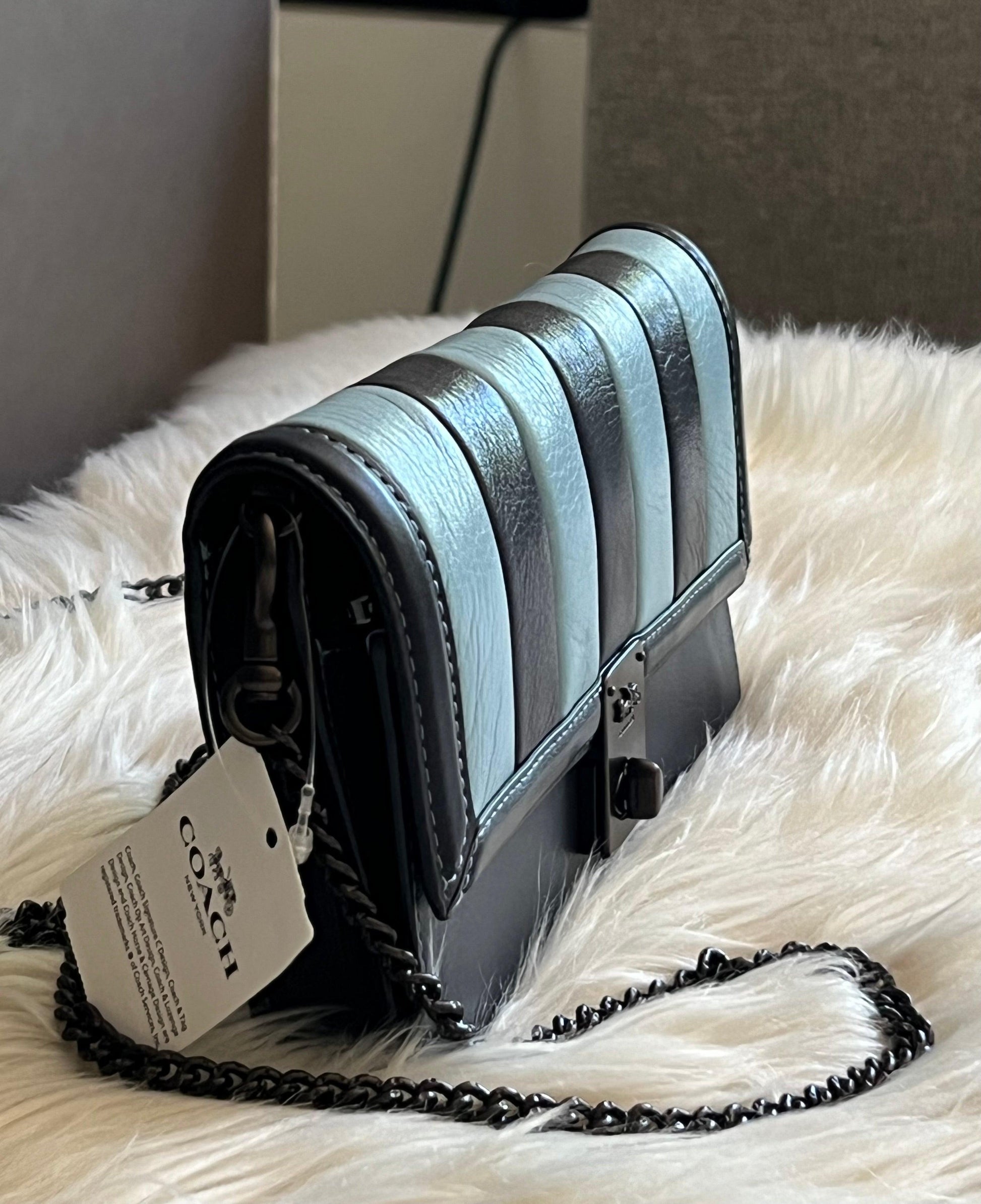 Introducing the Coach Hutton Clutch with Colorblock Quilting, the ultimate accessory for fashion-forward individuals. With its sleek design and intricate quilting, this clutch is sure to turn heads. Made from high-quality materials, it offers both style and durability. Elevate your outfit and make a statement with this chic and versatile clutch.