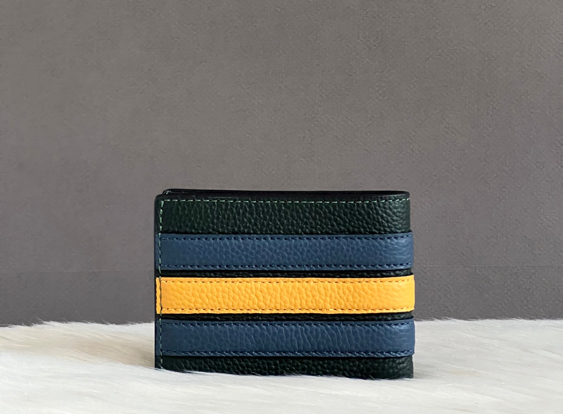 Introducing the Coach Men's Slim Billfold Wallet with Varsity Stripe. This sleek and stylish wallet features a slim design and a bold varsity stripe, perfect for the modern man. With its premium craftsmanship and functional design, it's the perfect combination of style and practicality. Upgrade your wallet game today.