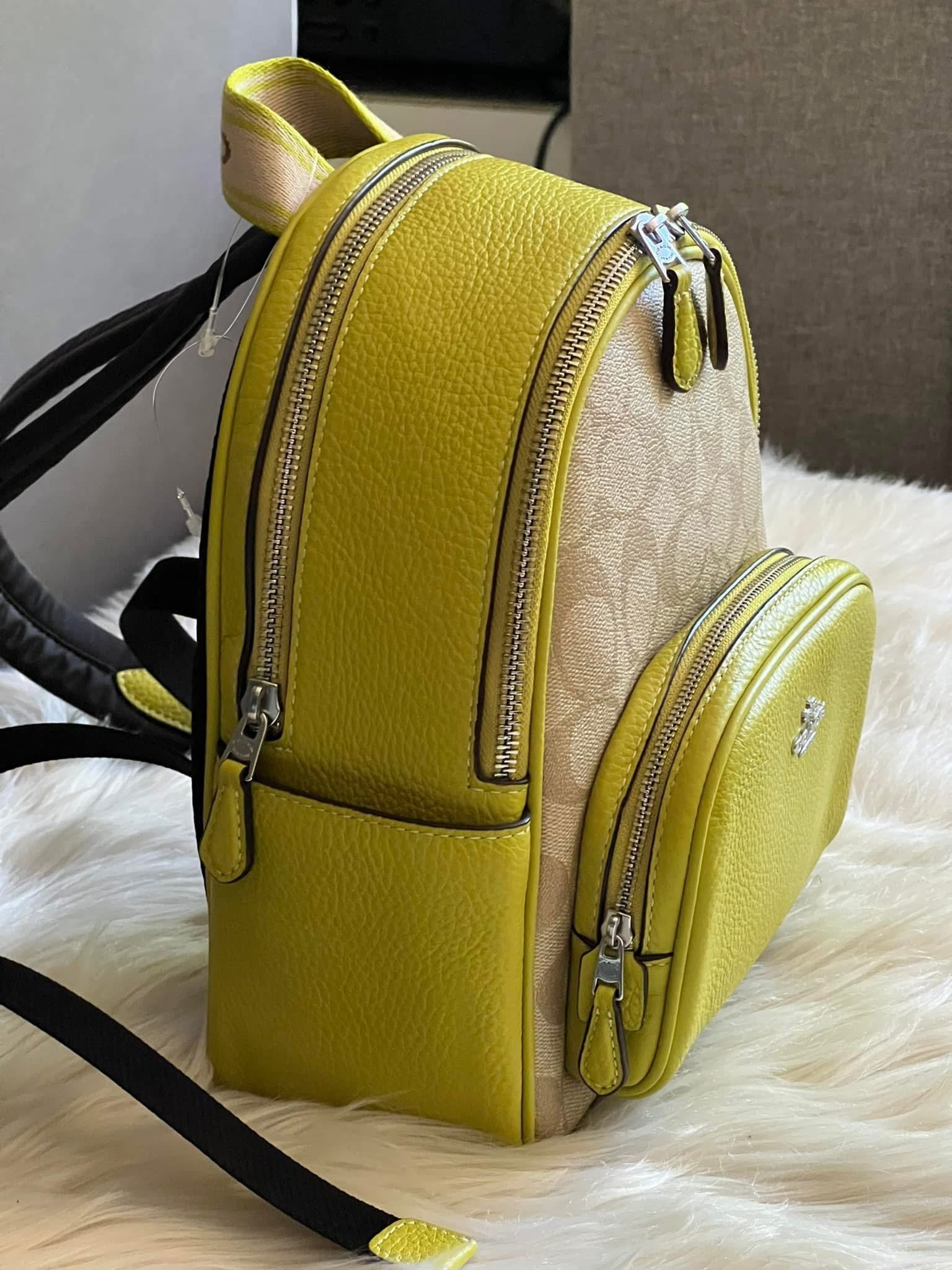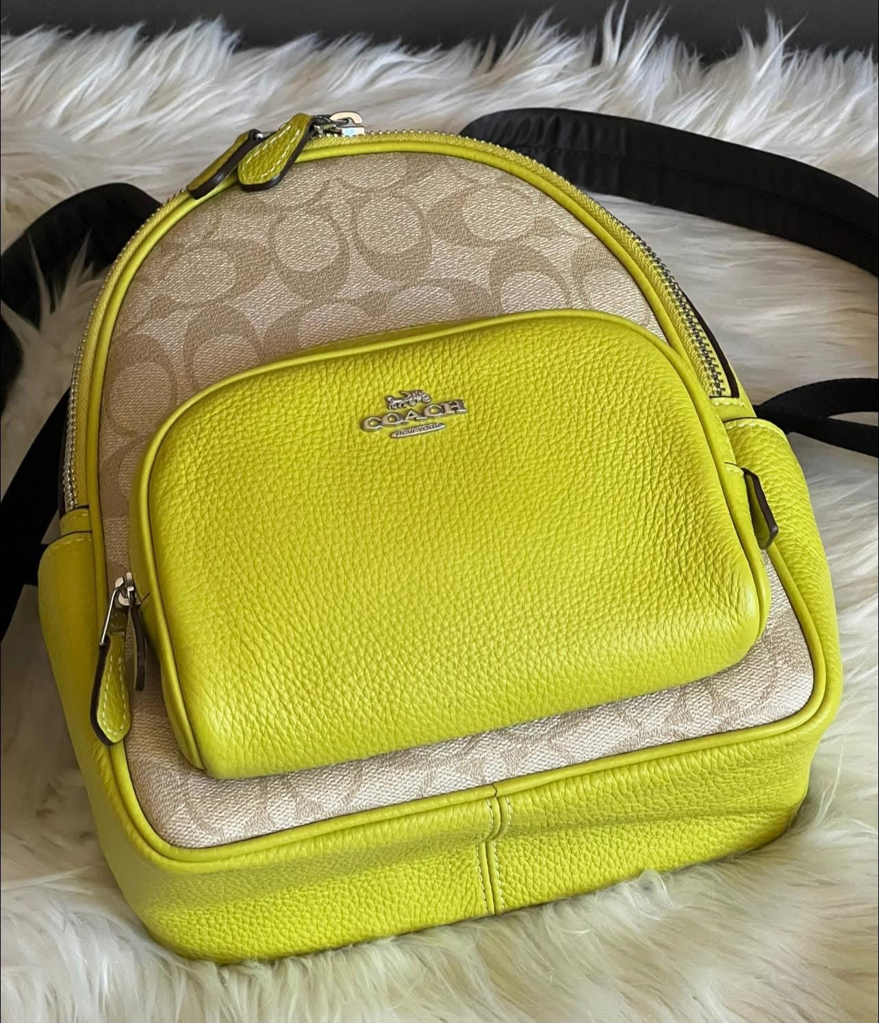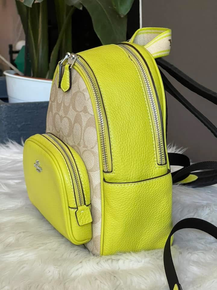 The Coach Mini Court Backpack in Signature Canvas is a stylish and functional accessory for any on-the-go individual. Made of durable canvas, it features a spacious main compartment with multiple interior pockets for organization. With adjustable straps and a classic design, this backpack is perfect for daily use or travel.