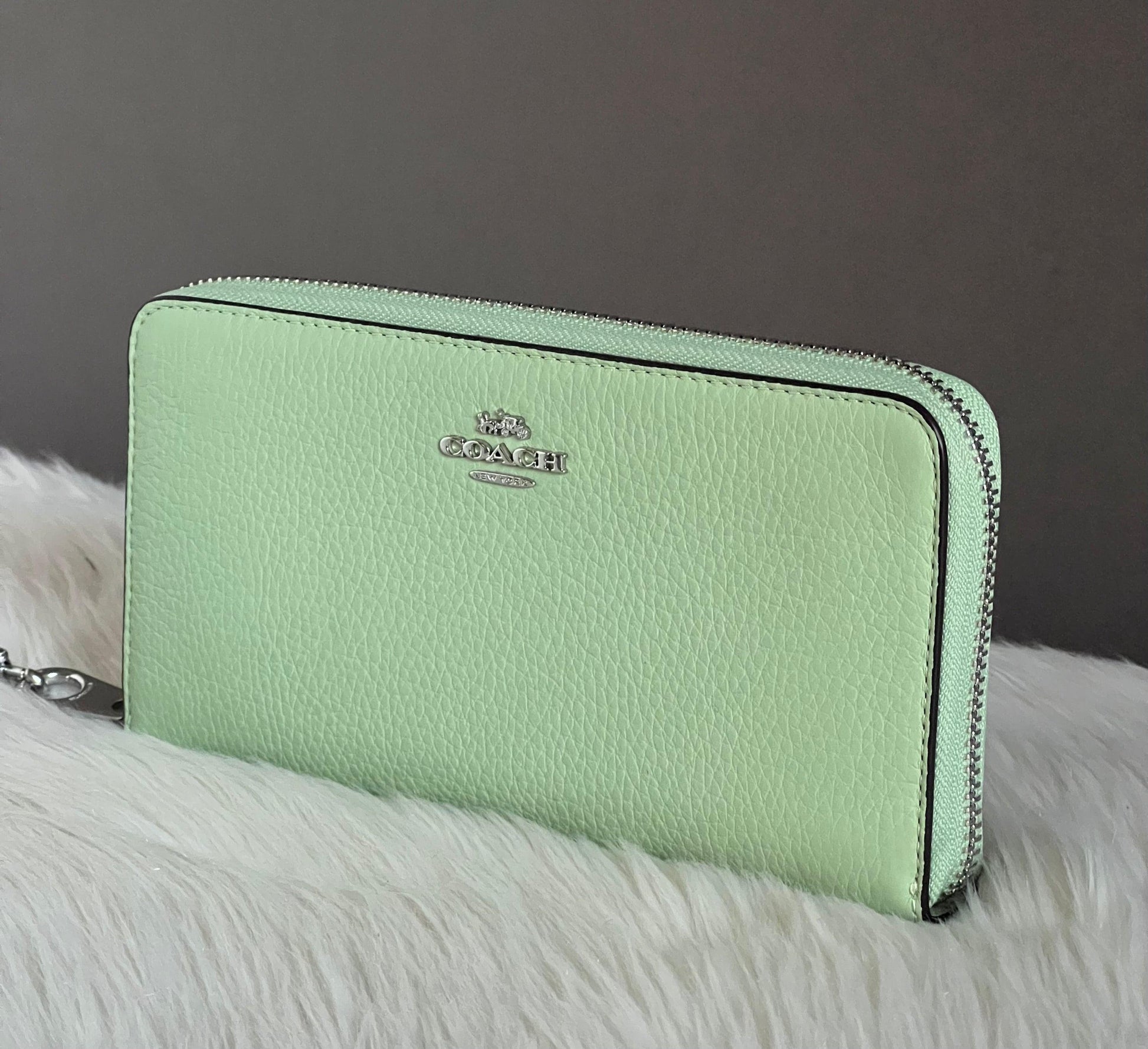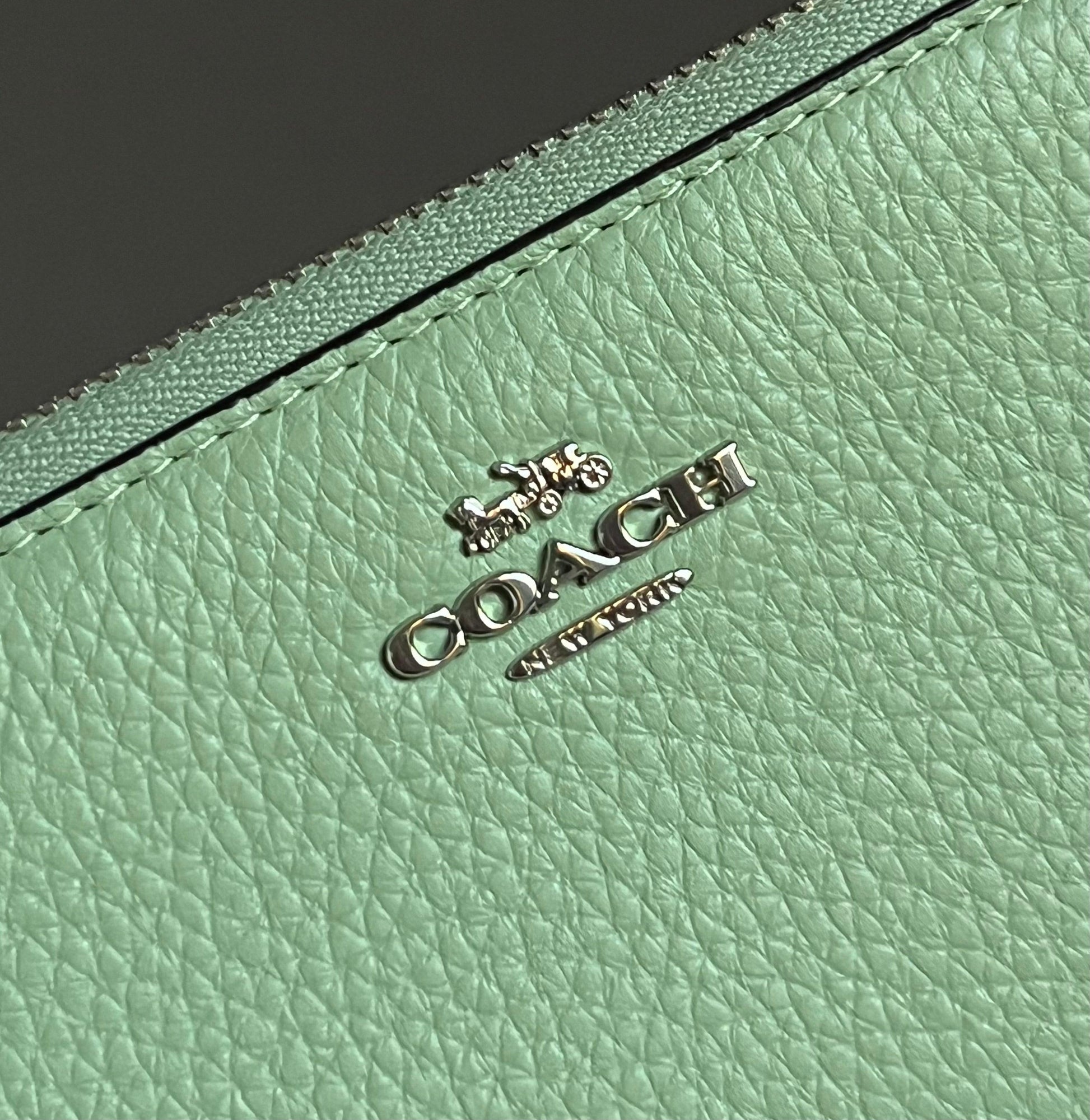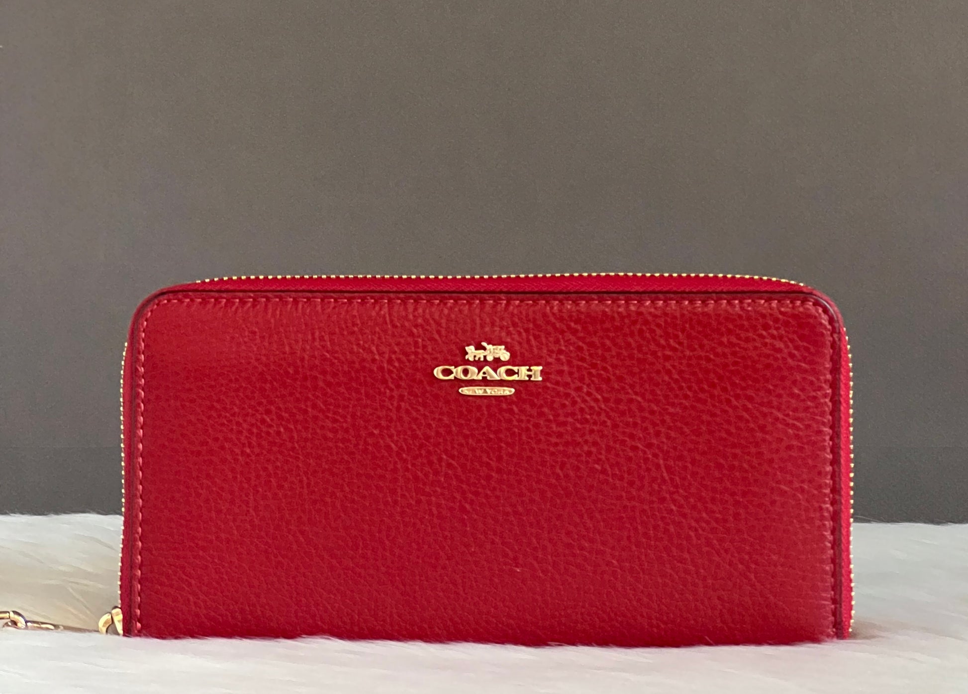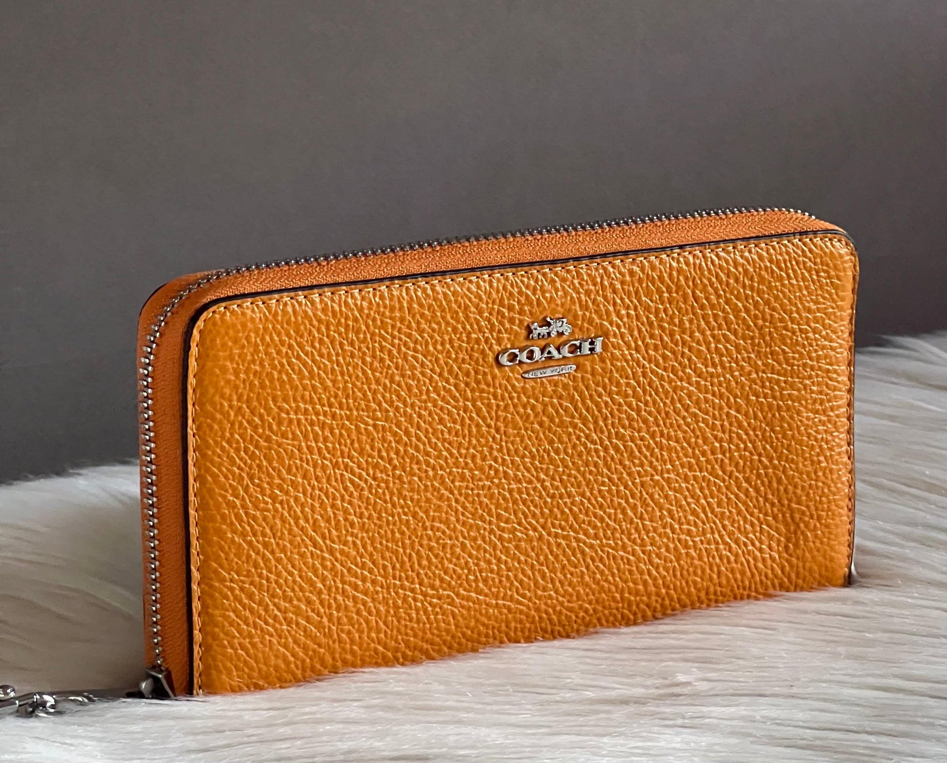 Indulge in luxury with the Coach Pebble Leather Zip Around Wallet. Made from high-quality pebble leather, this wallet is durable and stylish. The zip around closure ensures security, while the spacious interior and multiple compartments make organization a breeze. Perfect for the fashion-forward and practical individual.