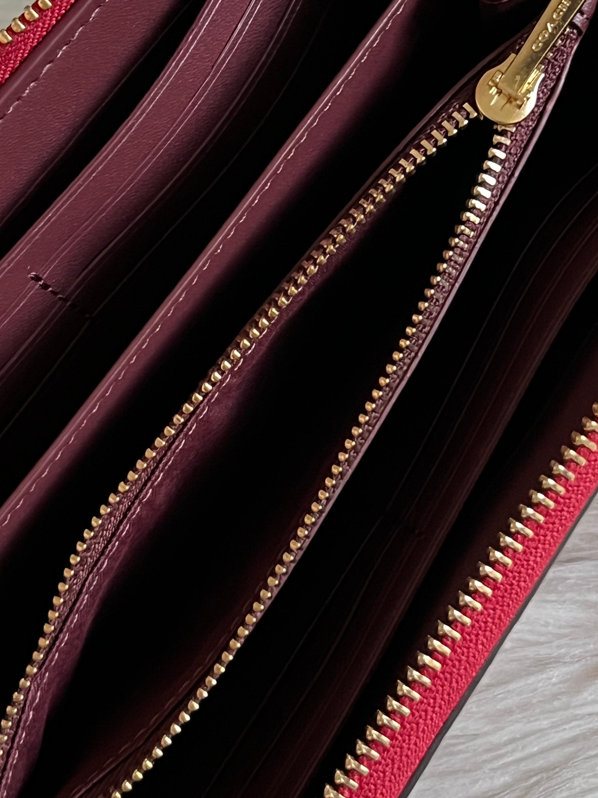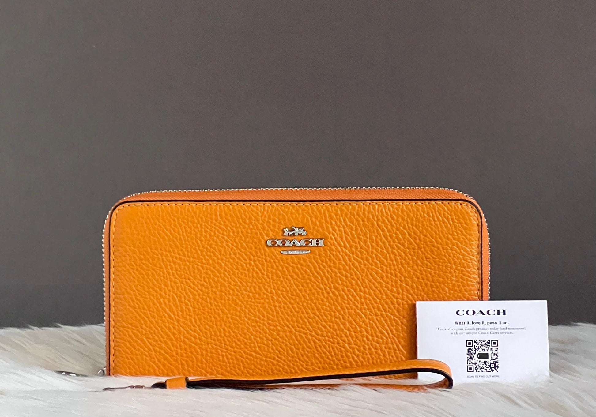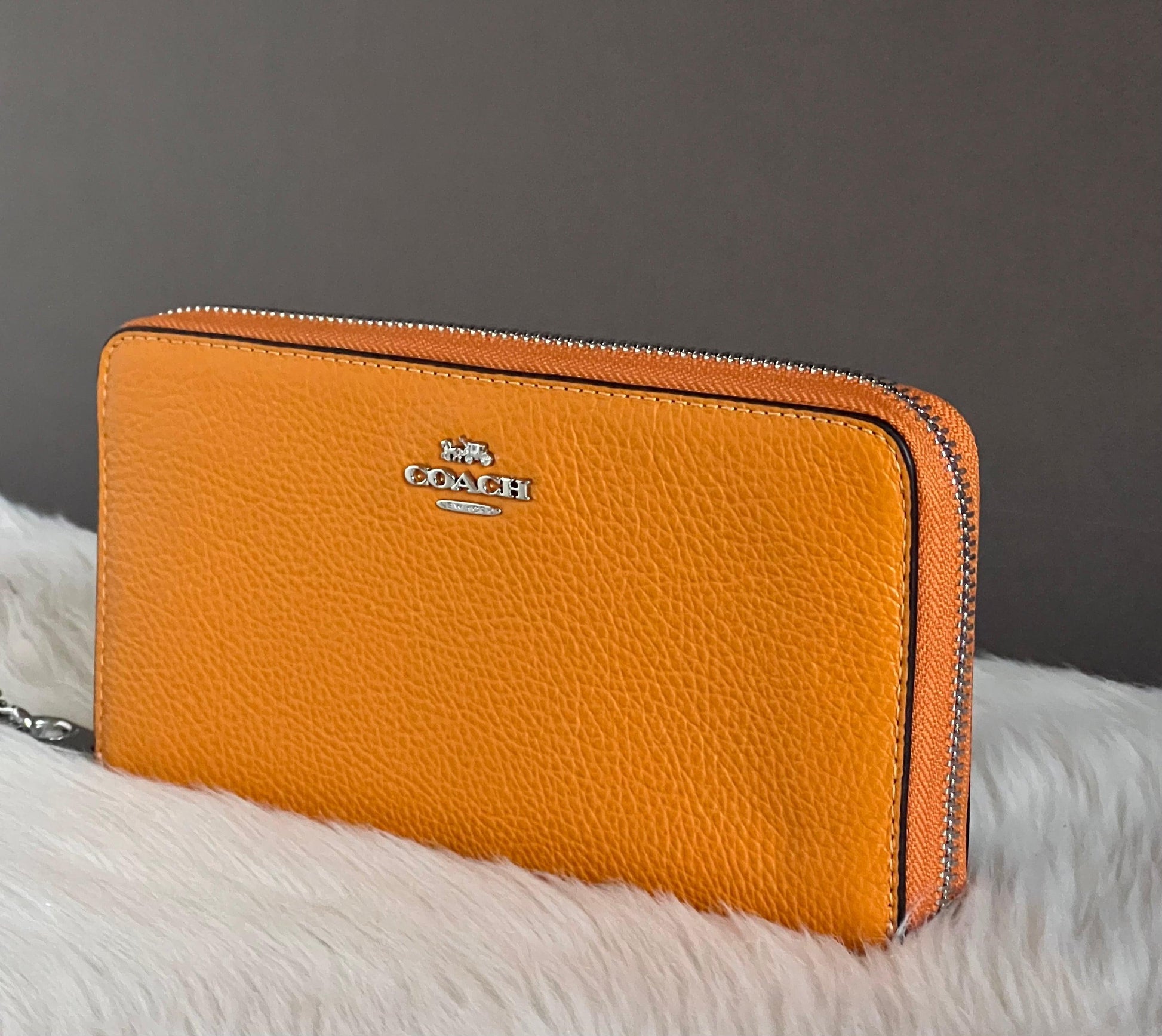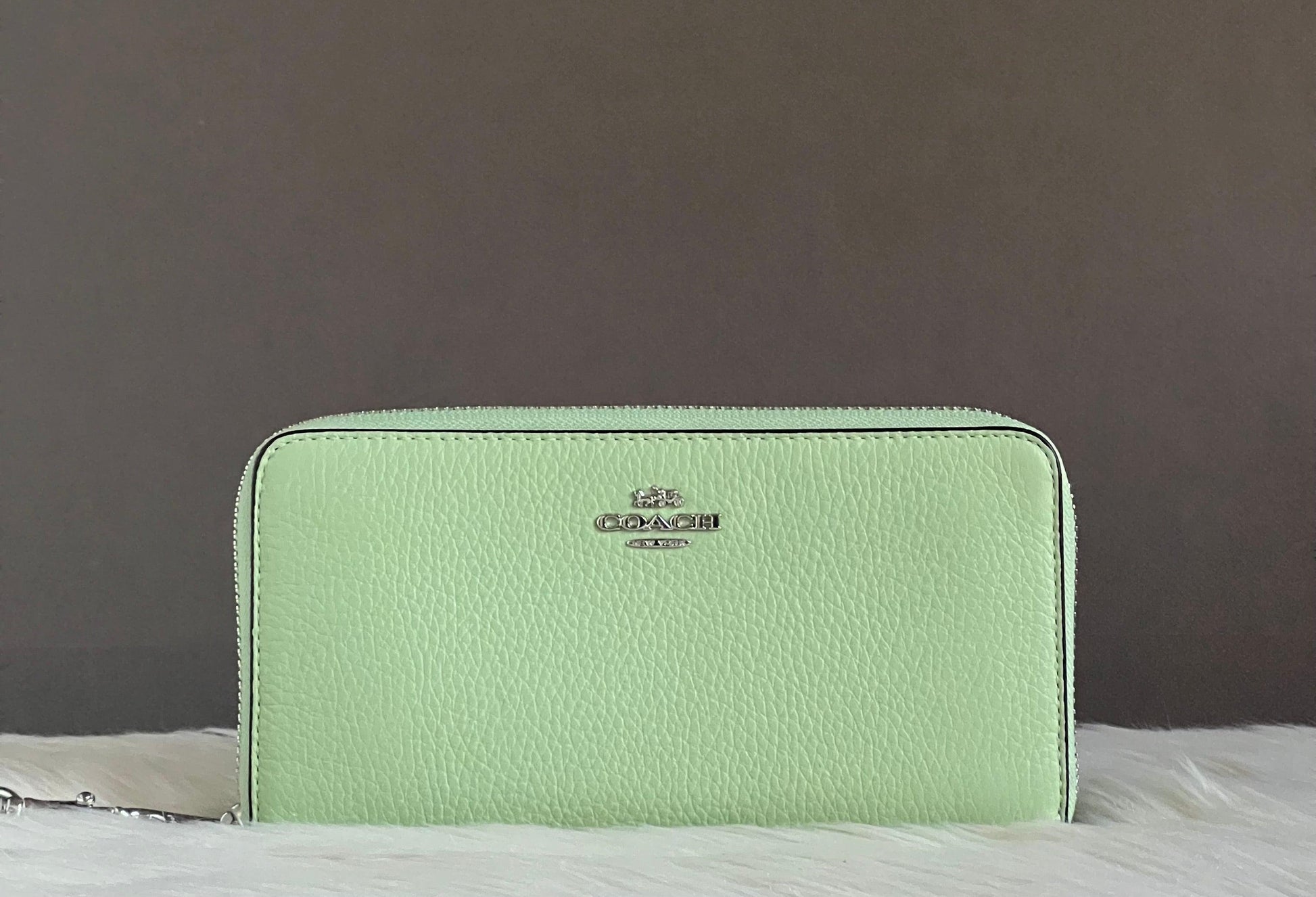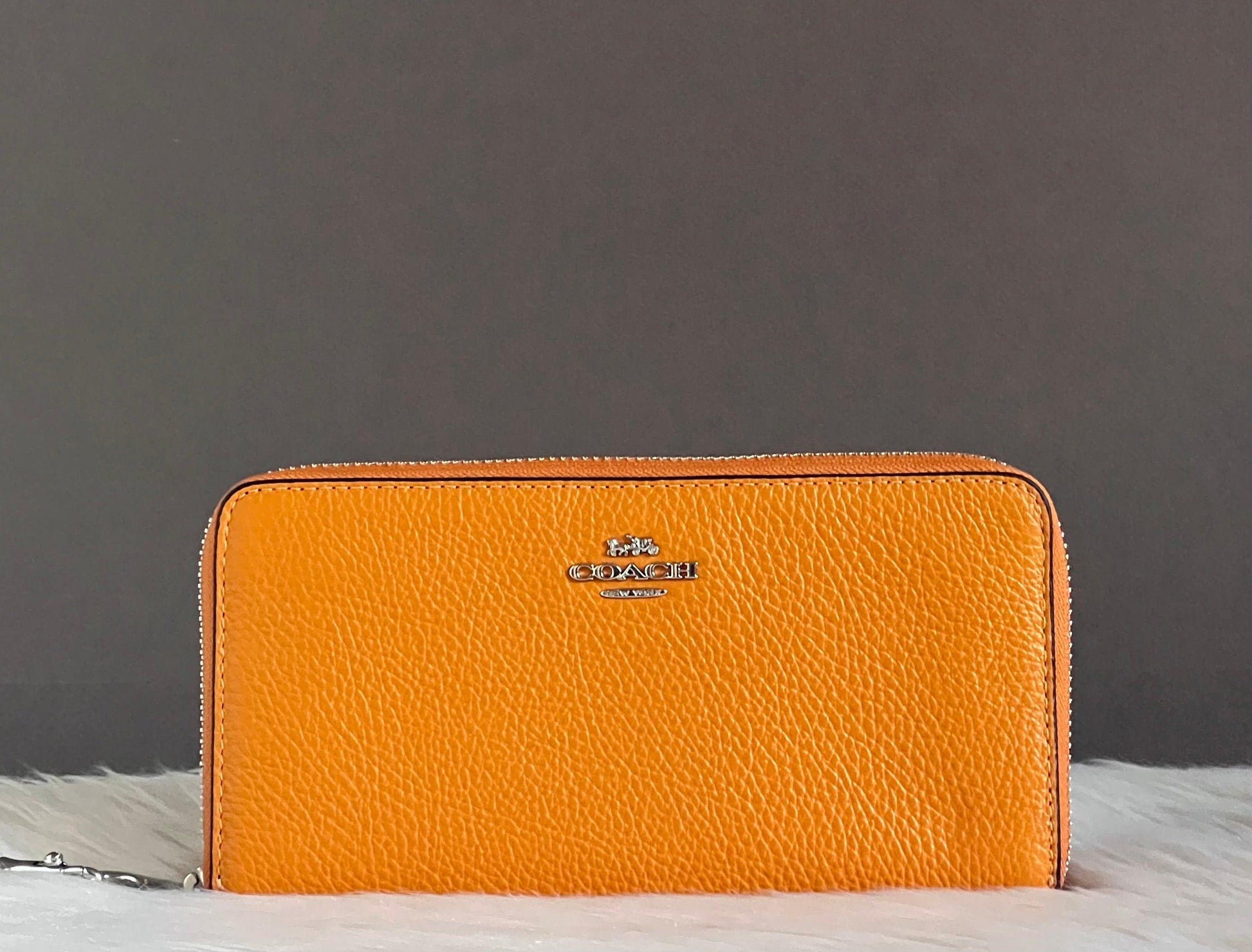 Indulge in luxury with the Coach Pebble Leather Zip Around Wallet. Made from high-quality pebble leather, this wallet is durable and stylish. The zip around closure ensures security, while the spacious interior and multiple compartments make organization a breeze. Perfect for the fashion-forward and practical individual.
