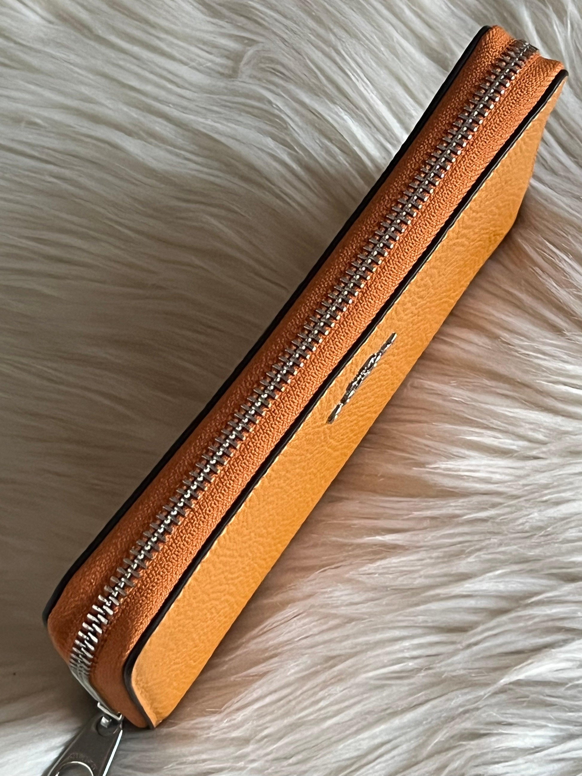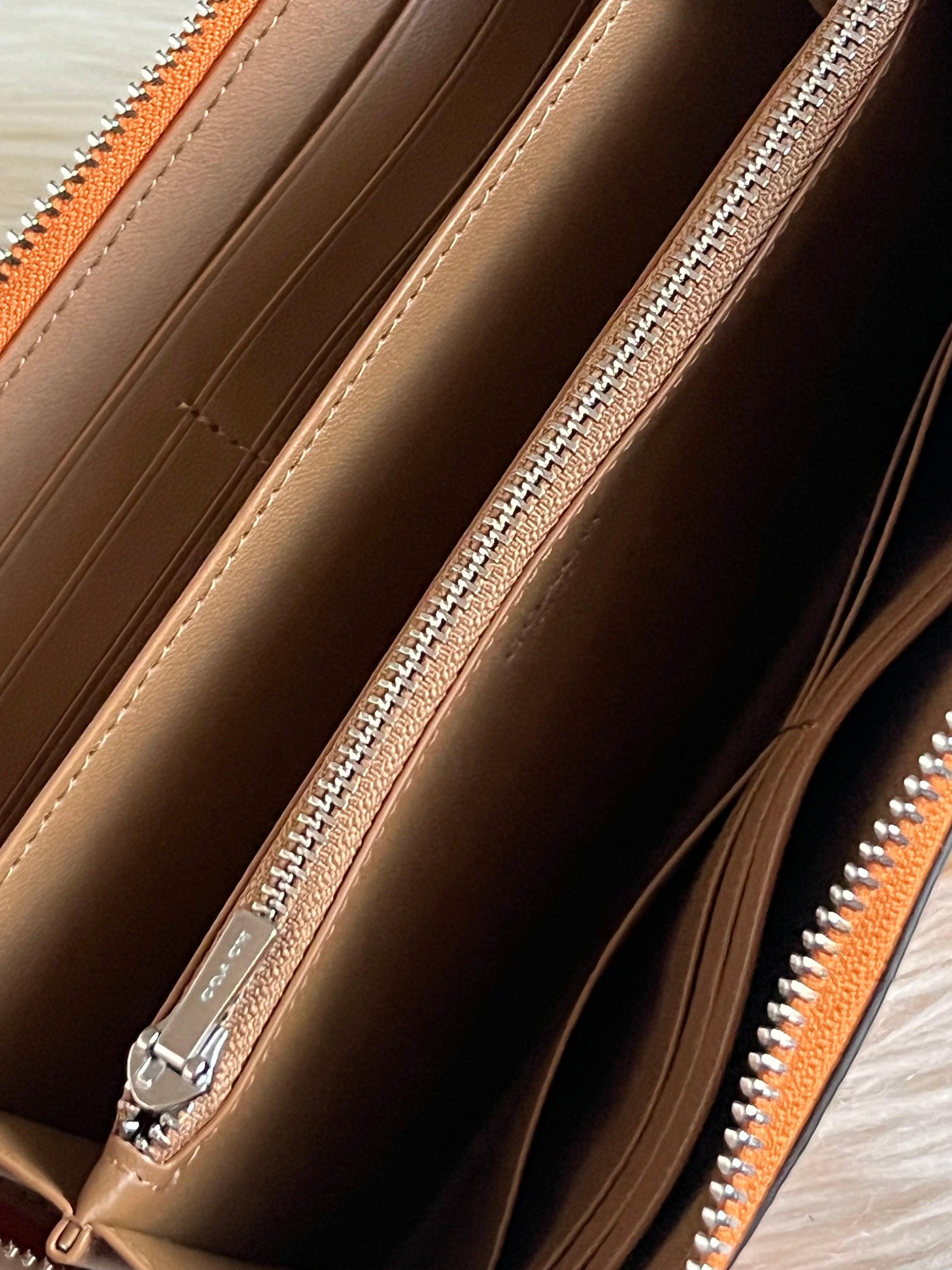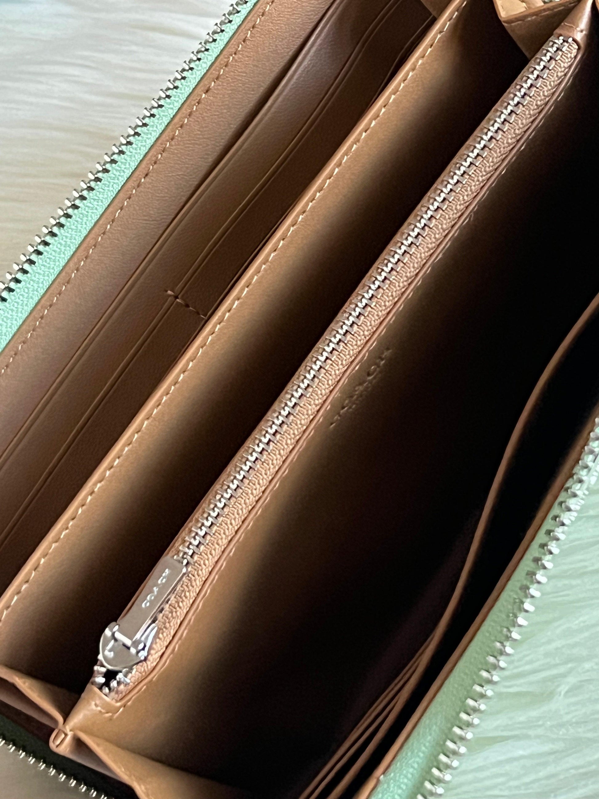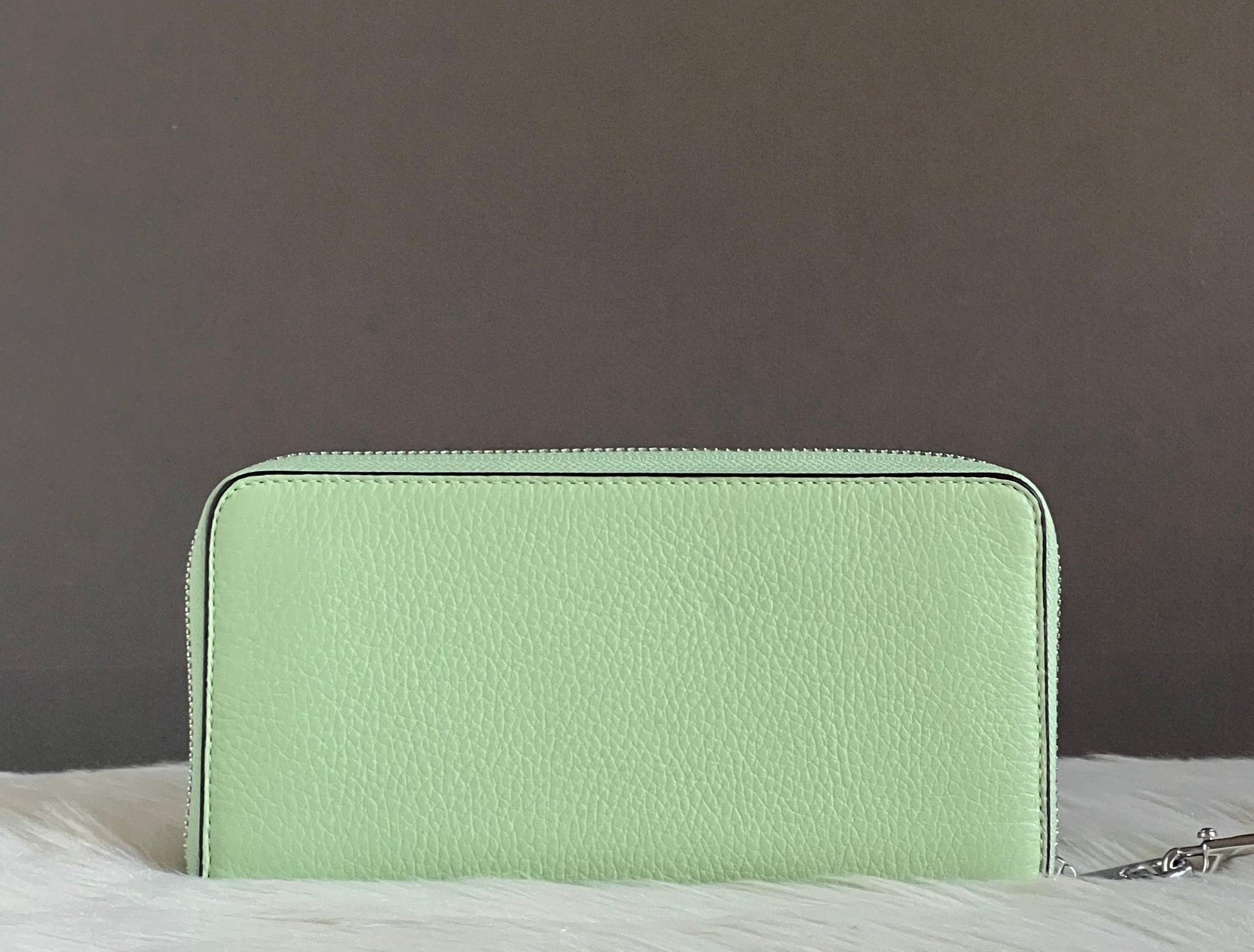 Indulge in luxury with the Coach Pebble Leather Zip Around Wallet. Made from high-quality pebble leather, this wallet is durable and stylish. The zip around closure ensures security, while the spacious interior and multiple compartments make organization a breeze. Perfect for the fashion-forward and practical individual.