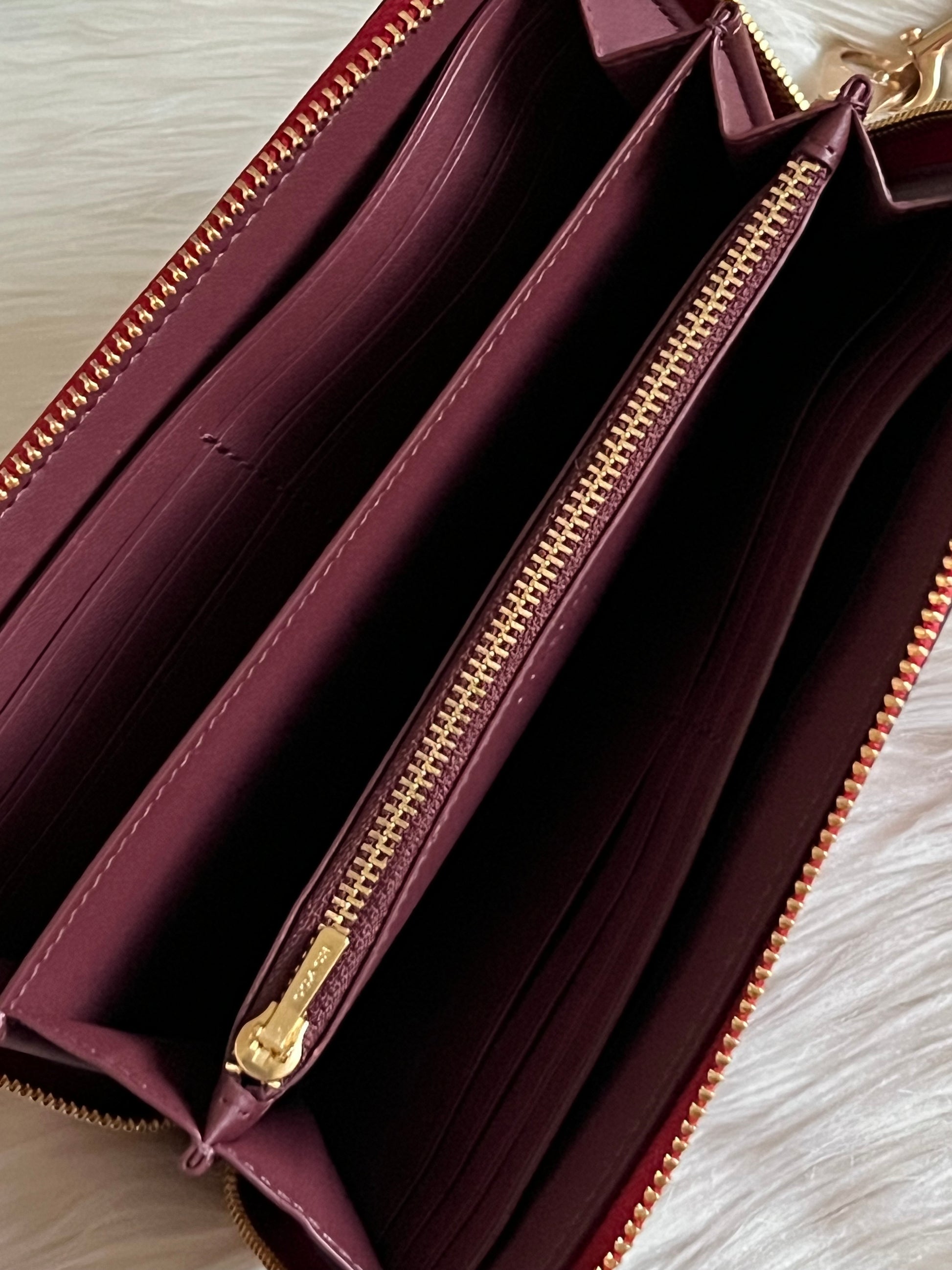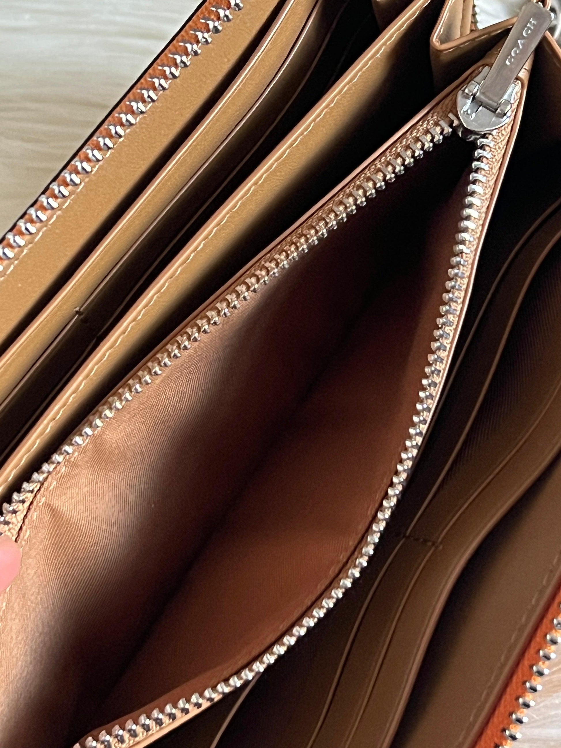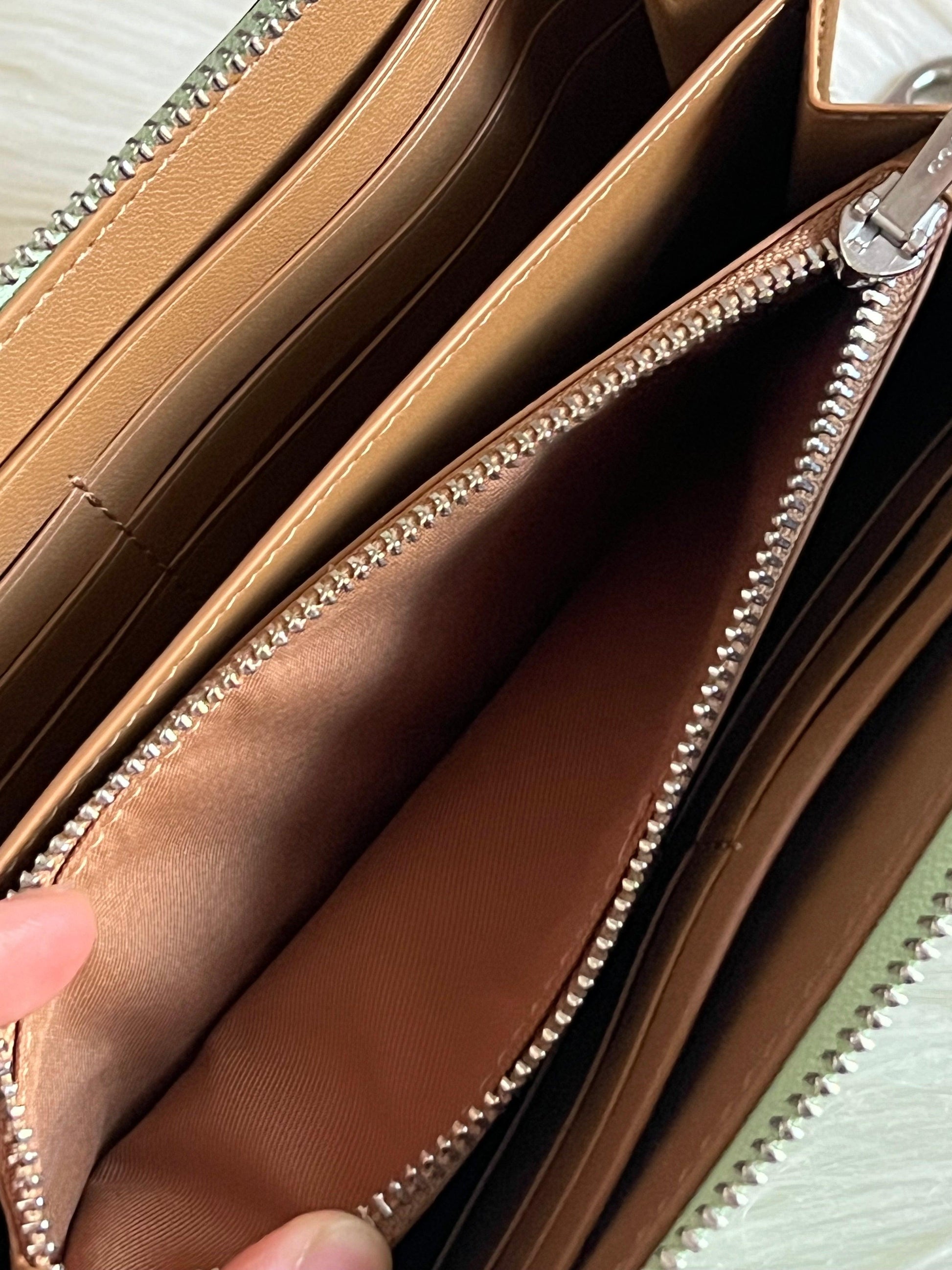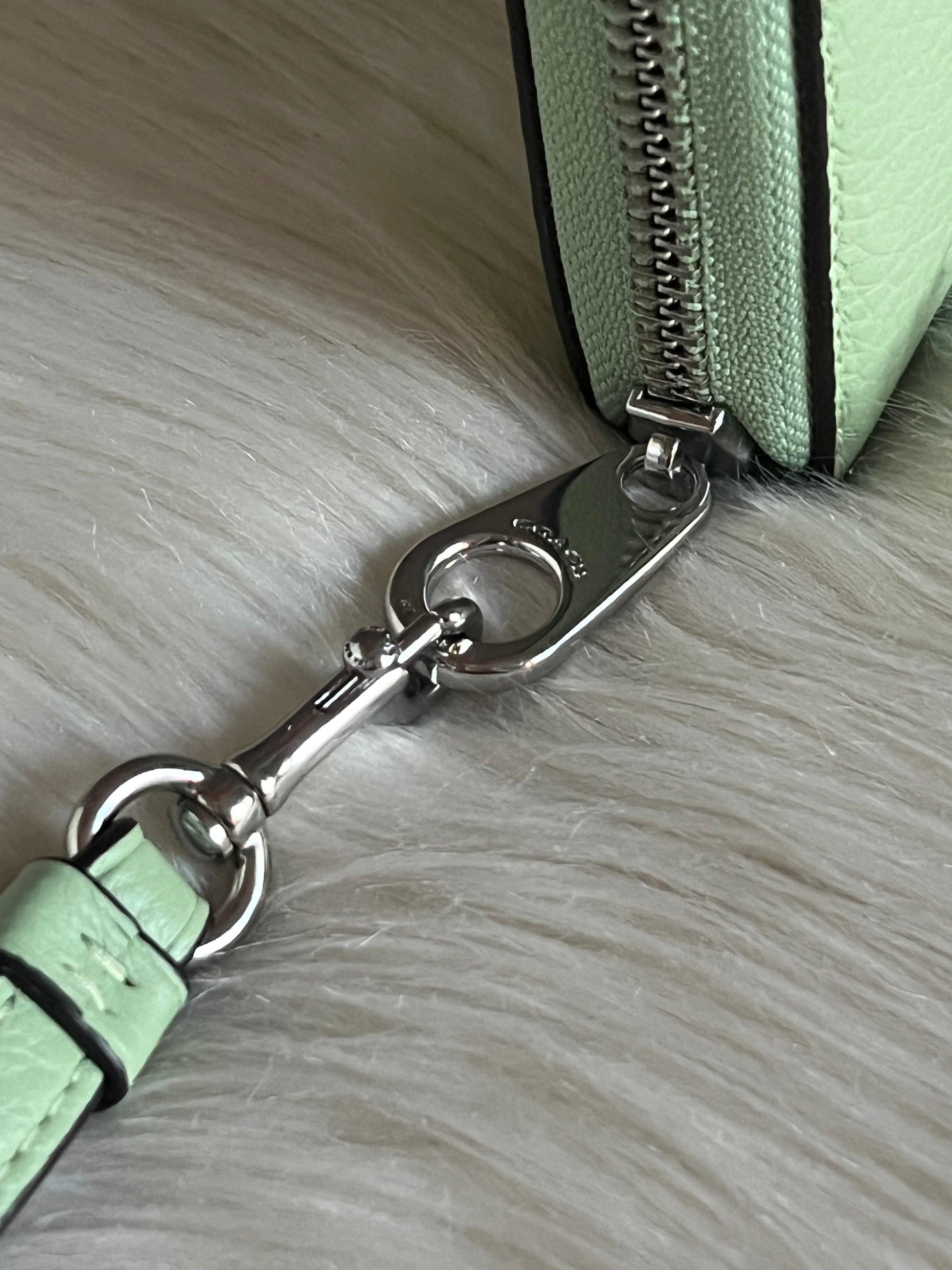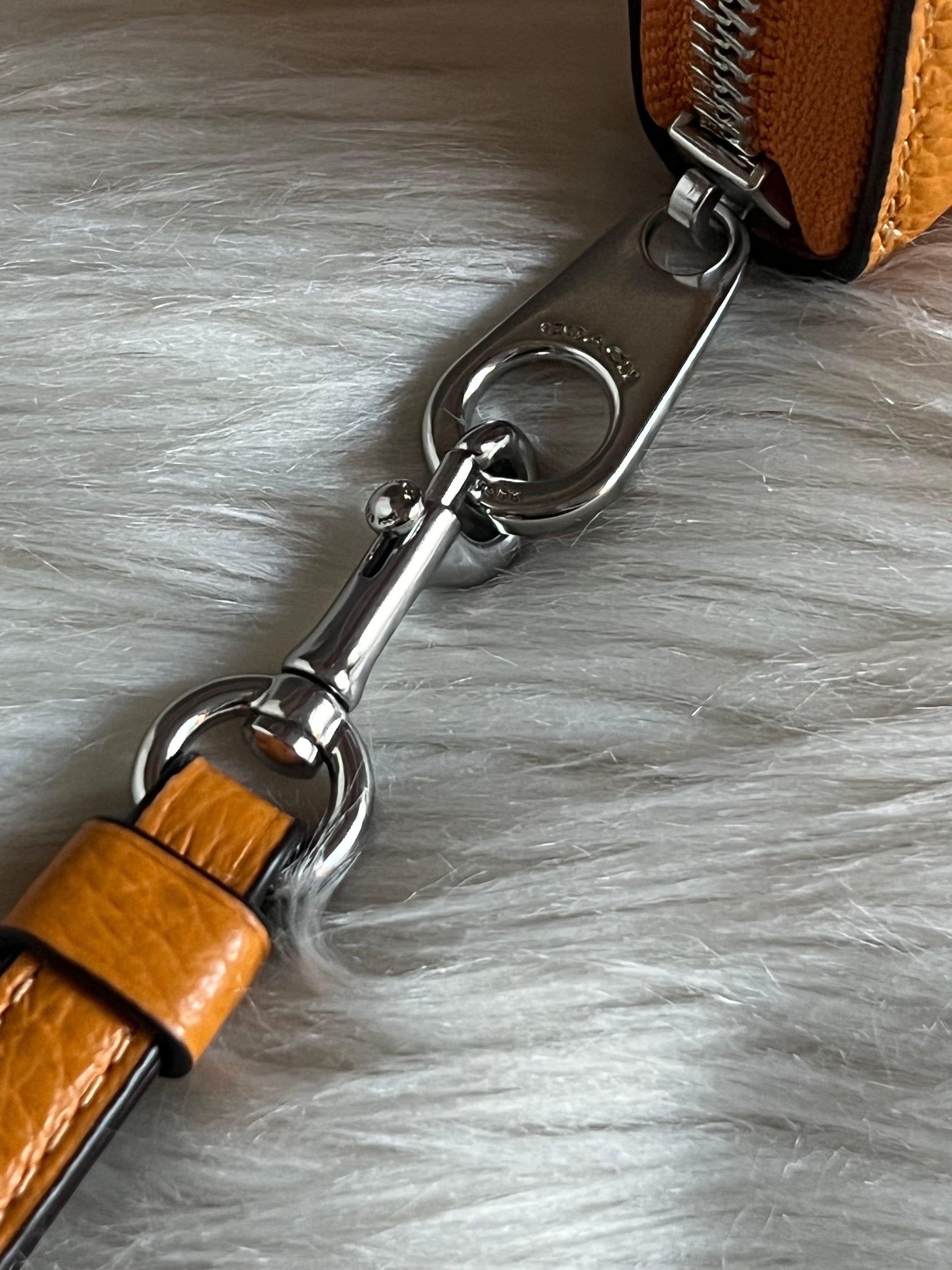 Indulge in luxury with the Coach Pebble Leather Zip Around Wallet. Made from high-quality pebble leather, this wallet is durable and stylish. The zip around closure ensures security, while the spacious interior and multiple compartments make organization a breeze. Perfect for the fashion-forward and practical individual.