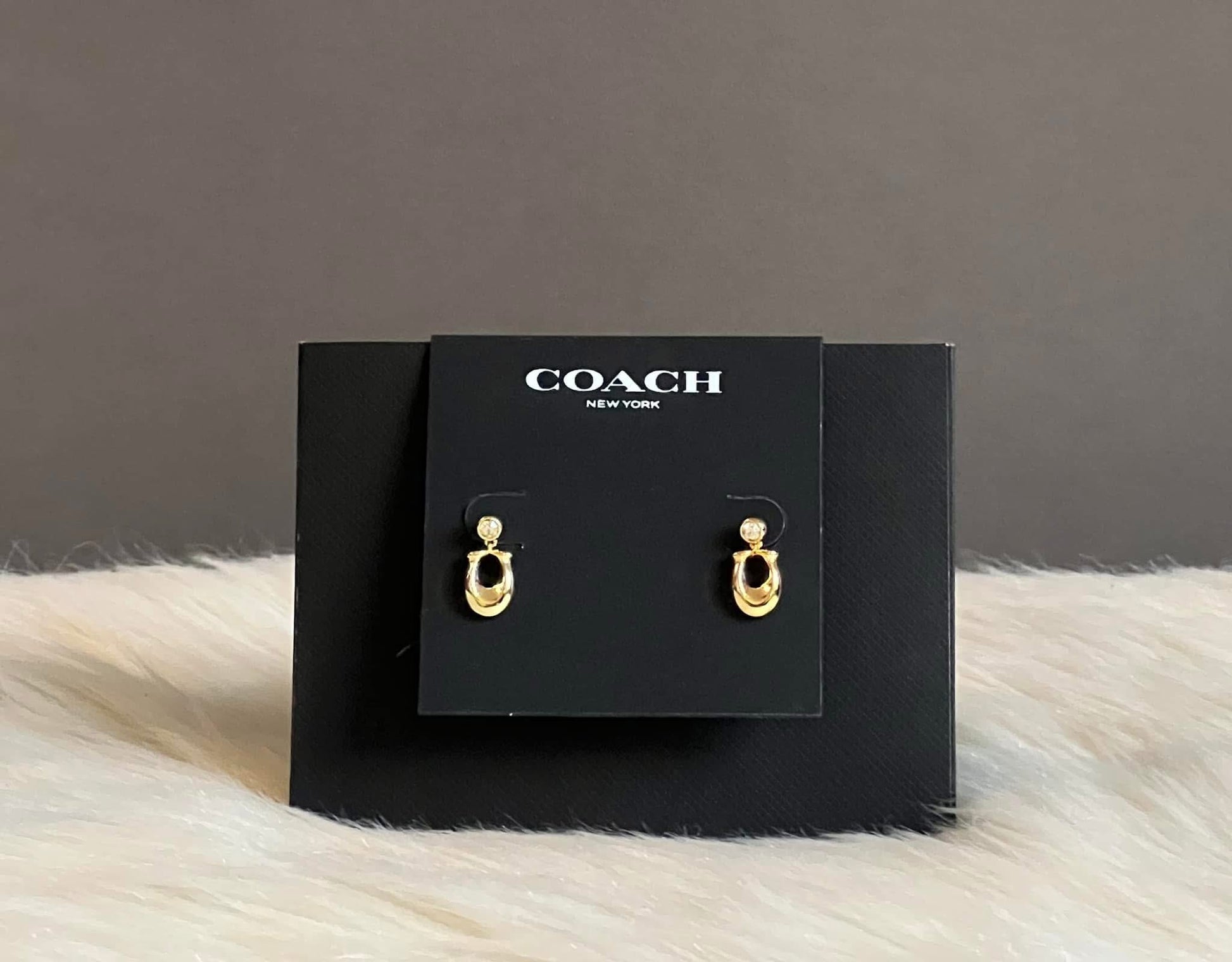 "These Coach Signature Crystal Earrings are the perfect accessory for any occasion. These earrings feature a stunning crystal design that adds elegance and sophistication to any outfit. Made with top-quality materials, these earrings are both durable and stylish. Enhance your look today with these must-have earrings."