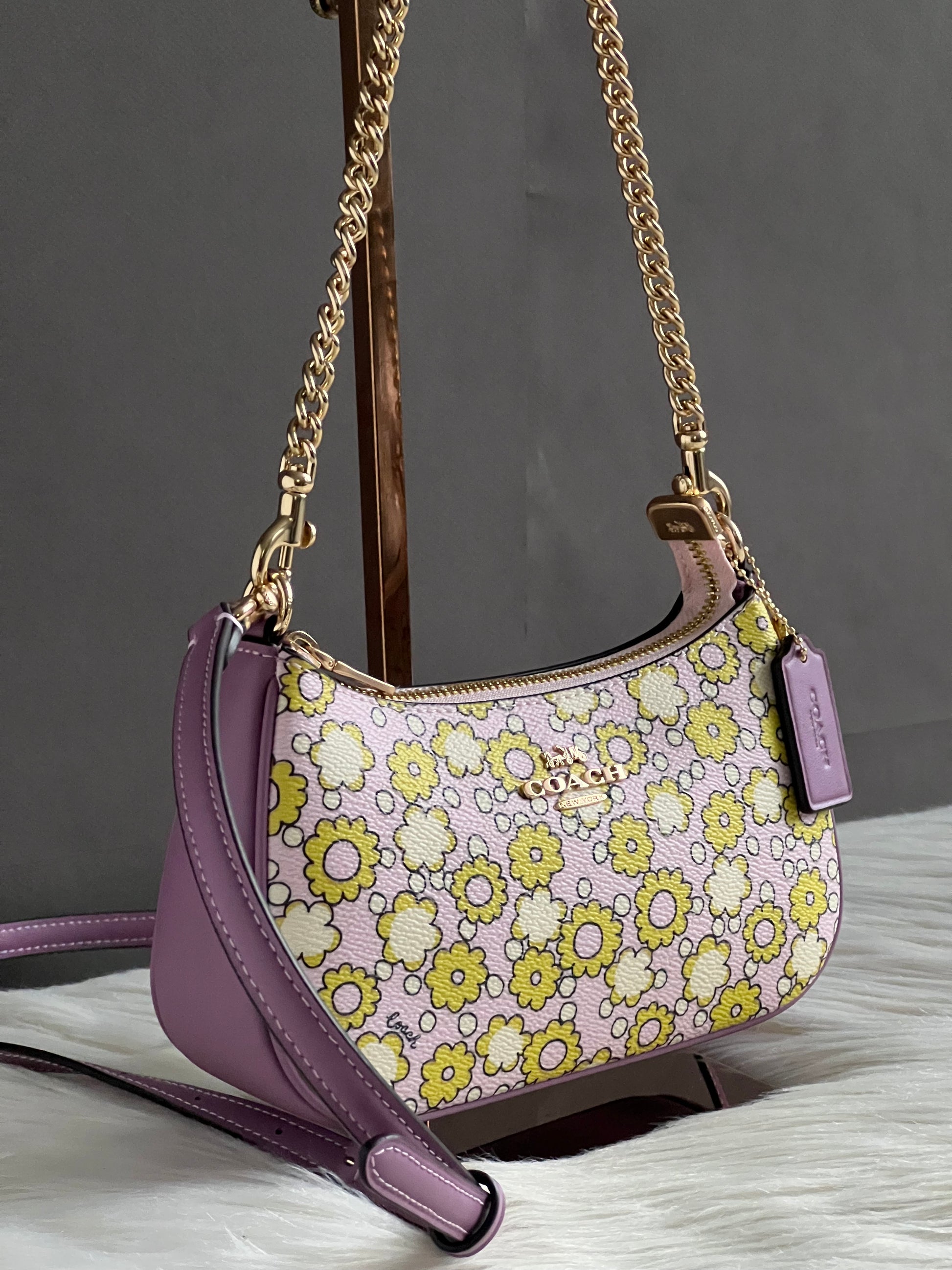 Experience luxury with the Coach Teri Mini Crossbody Bag. Featuring a beautiful floral print, this bag is perfect for any occasion. With its compact size and durable design, it's the ideal accessory for your daily essentials. Elevate your style and stay organized with this must-have bag.