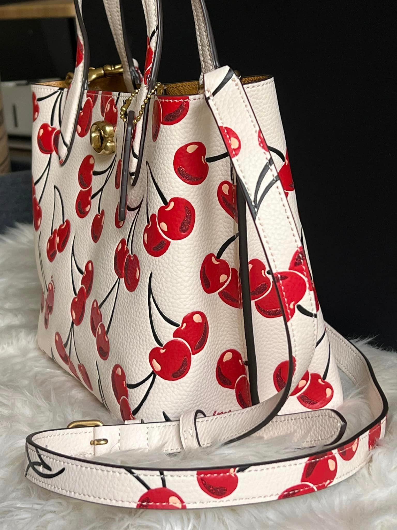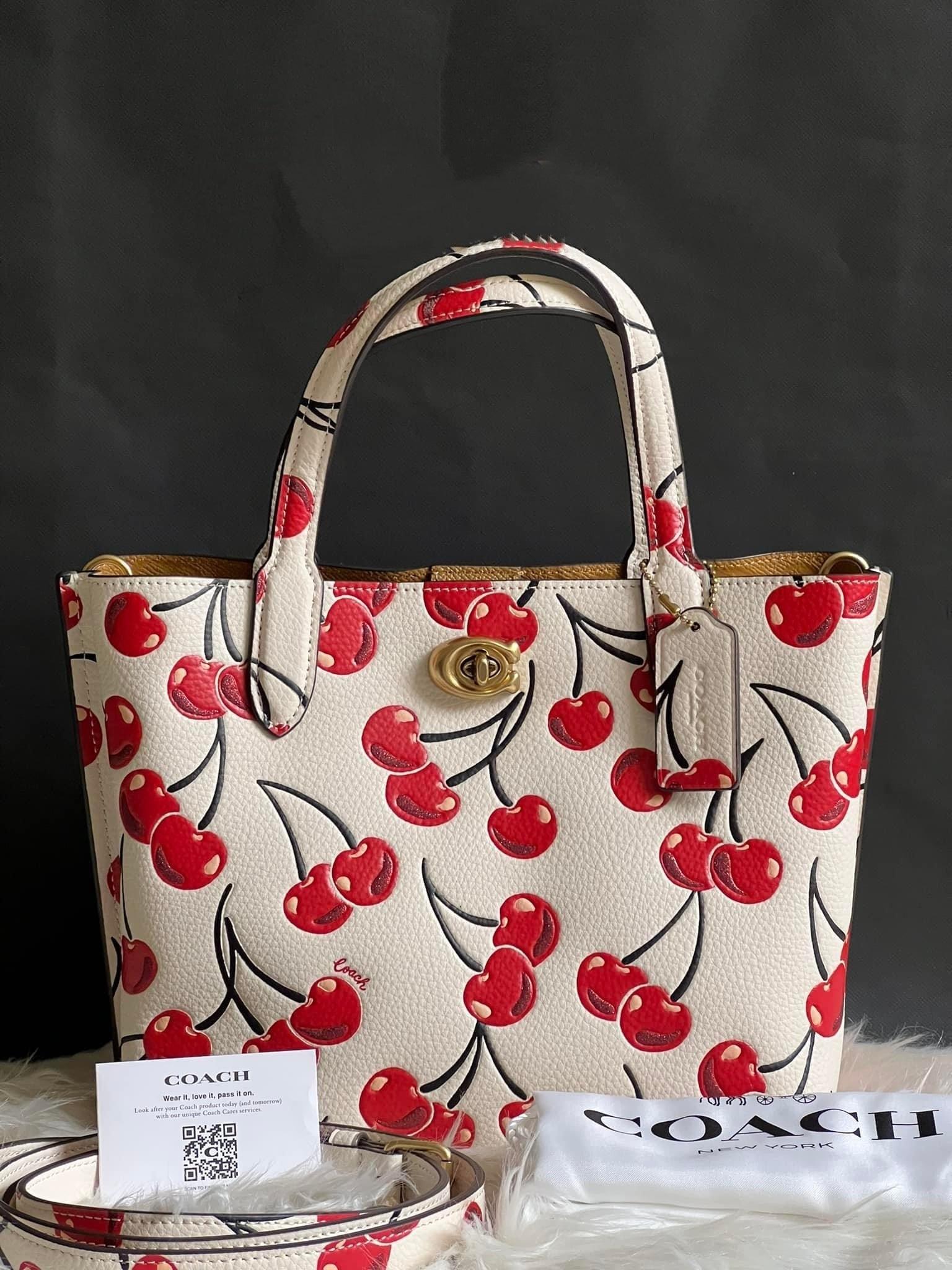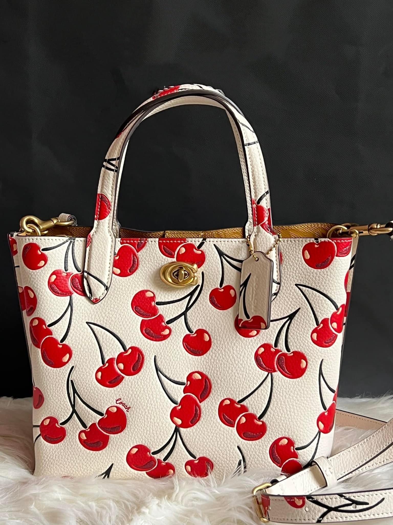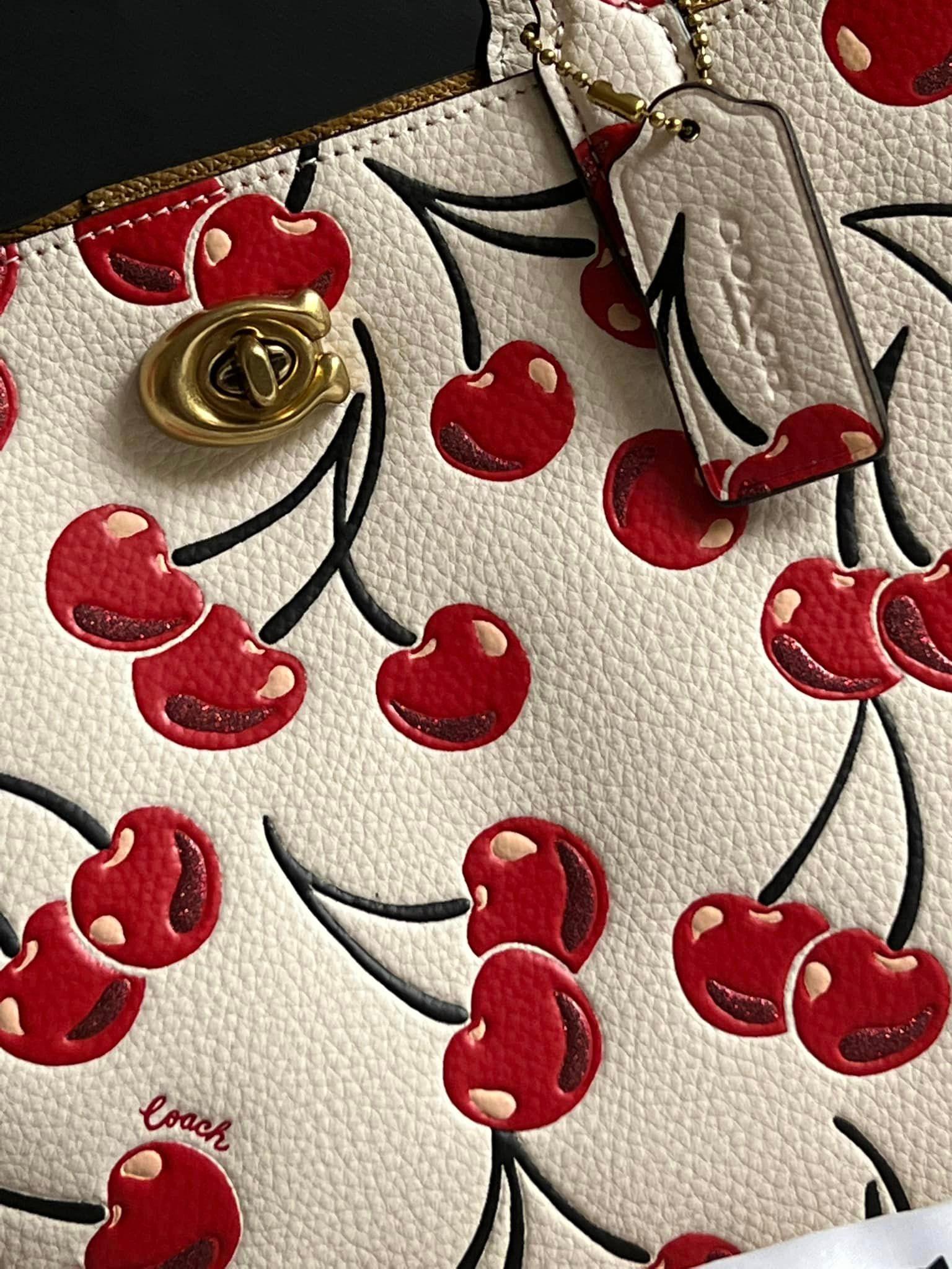 Polished pebble leatherCenter zip compartmentTurnlock and magnetic snap closuresHandles with 4 1/2" dropDetachable strap with 21 1/2" drop for shoulder or crossbody wearFour protective feet at base