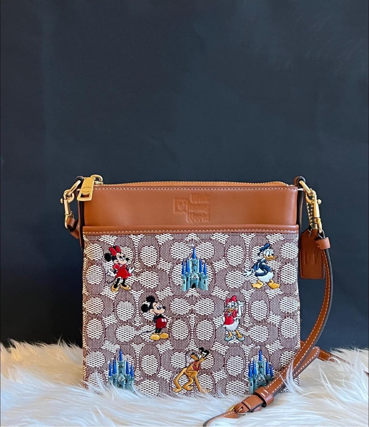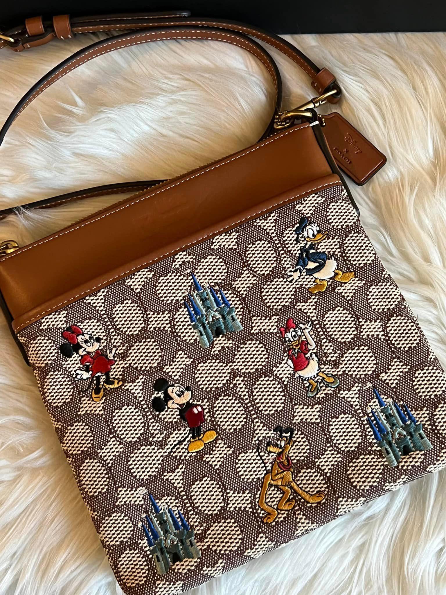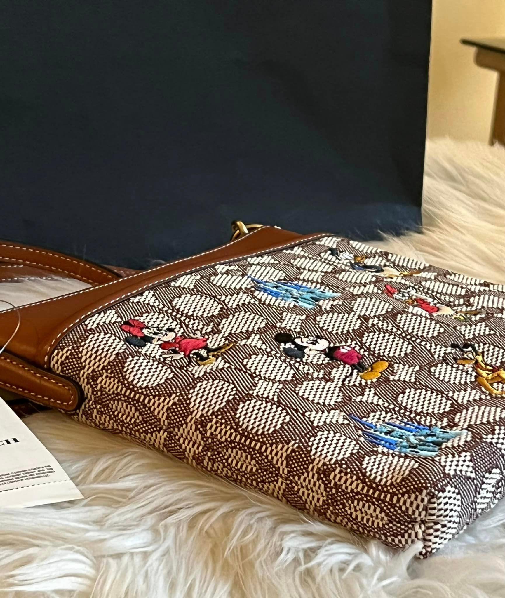 Coach X Disney Kitt Messenger Crossbody In Signature Textile Jacquard With Mickey Mouse And Friends Embroidery