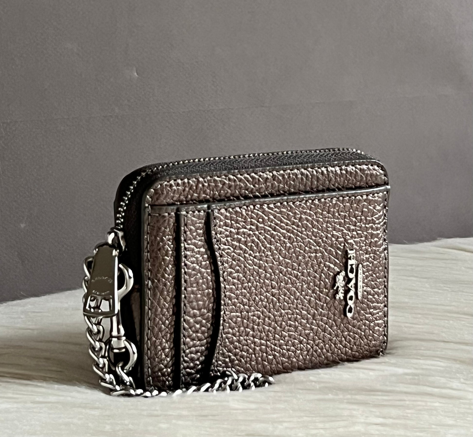 This sleek Coach Zip Card Case is the perfect accessory for those looking to combine style and convenience. Its luxurious leather material and efficient design allow for easy access to cards and cash, making it the ideal choice for those on-the-go. Keep your essentials secure and organized with this expertly crafted card case.
